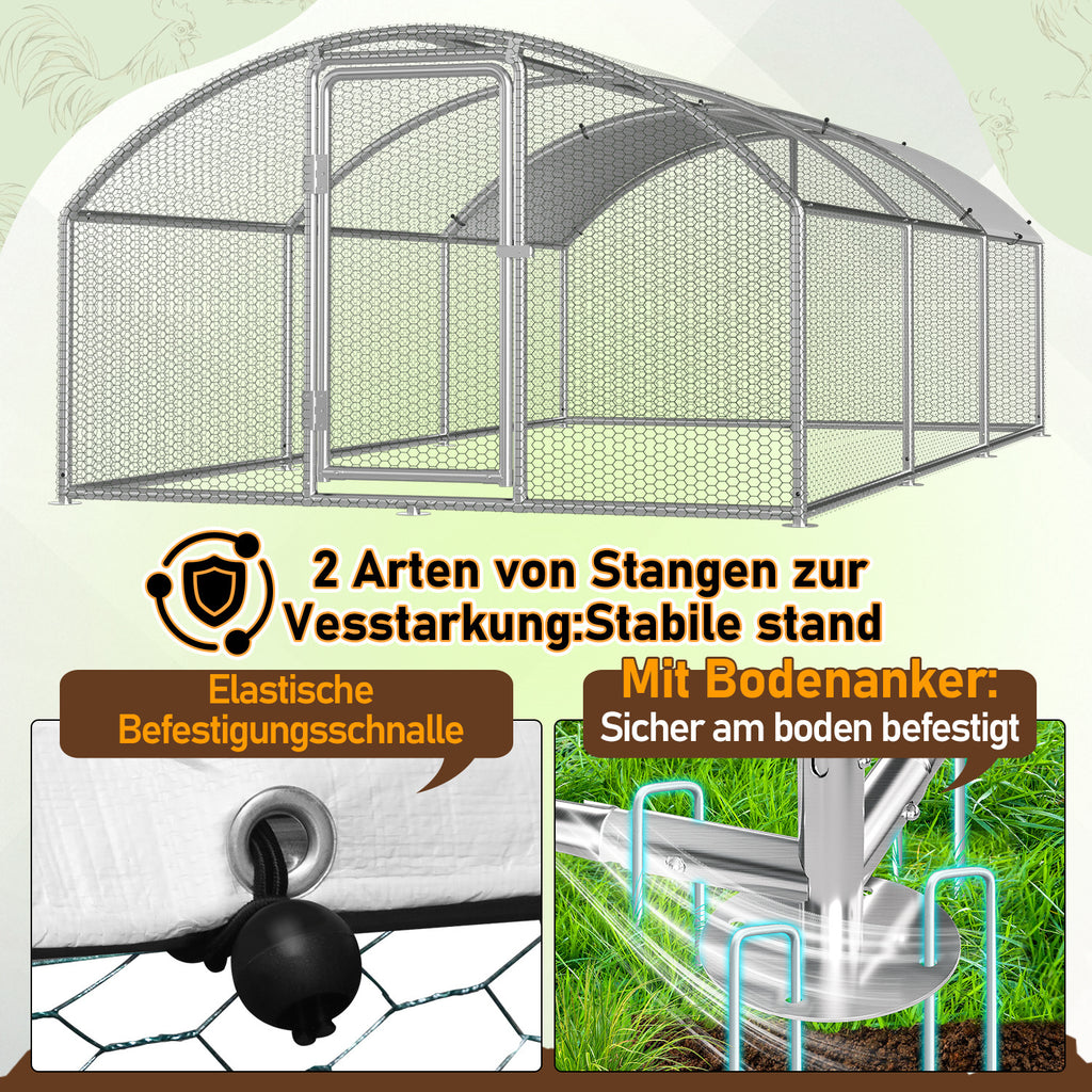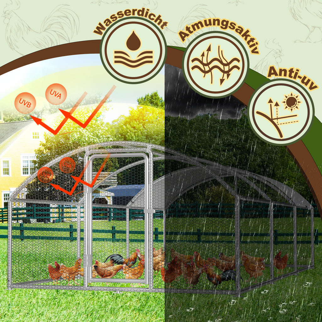 SWANEW Hühnerstall, 3x6x2m Kuppel Dach Hühnerhaus Freilaufgehege, Tiergehege