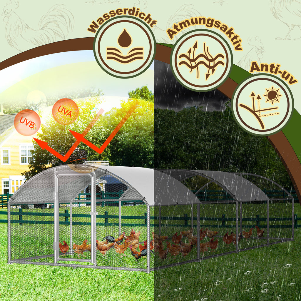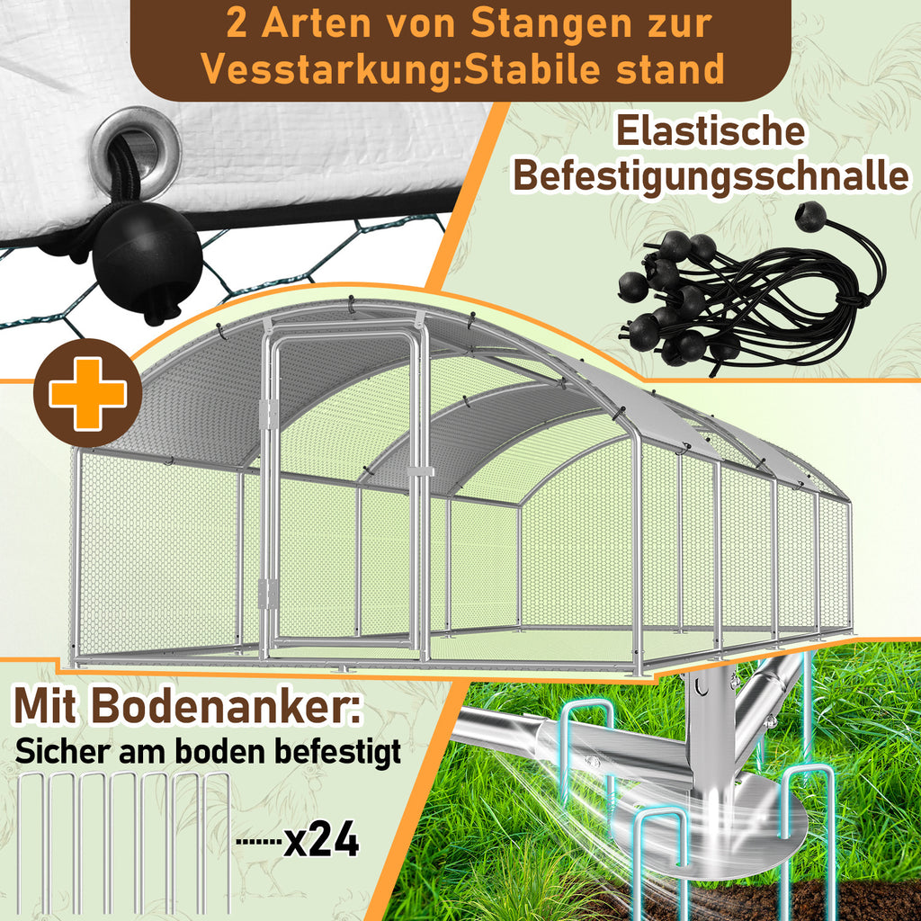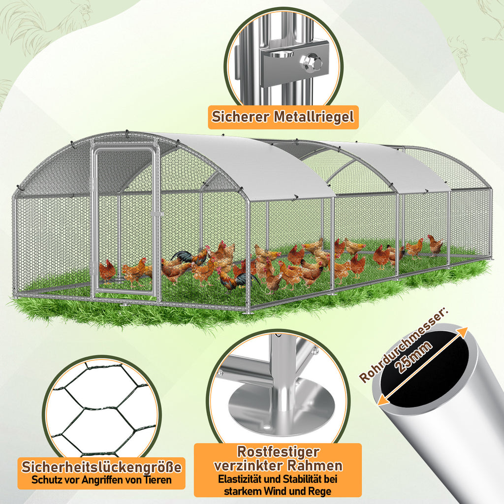 SWANEW Hühnerstall, 3x8x2m Kuppel Dach Hühnerhaus Freilaufgehege, aus Verzinkter Stahl