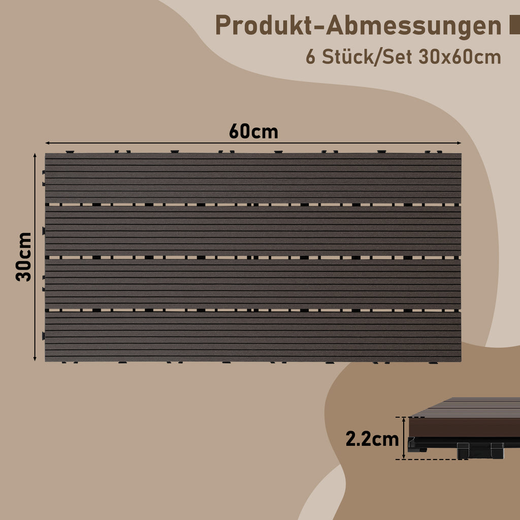 SWANEW WPC Terrassenfliesen, 30x60cm Balkonfliesen, Klickfliesen, Gartenfliesen, 1㎡-5㎡