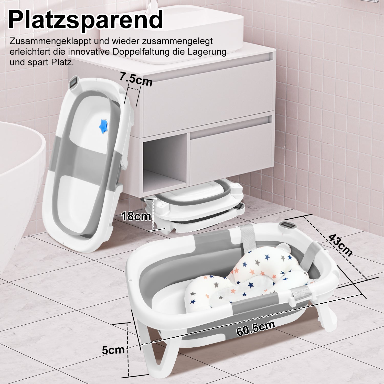 👼【Platzsparend】Mit ein paar einfachen Schritten können Sie die Wanne in eine quadratische Form zu falten, die für die Lagerung gut ist und spart Platz.