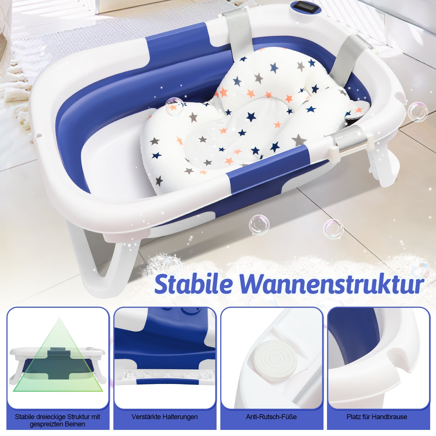 👼【Stabile Unterstützung】Die acht außenliegenden Beine der Badewanne bilden eine stabile Dreiecksstruktur, die insgesamt nicht wackelt. Die Babybadewanne ist zudem mit verstärkten Stützgestellen und rutschfesten Fußpolstern ausgestattet.