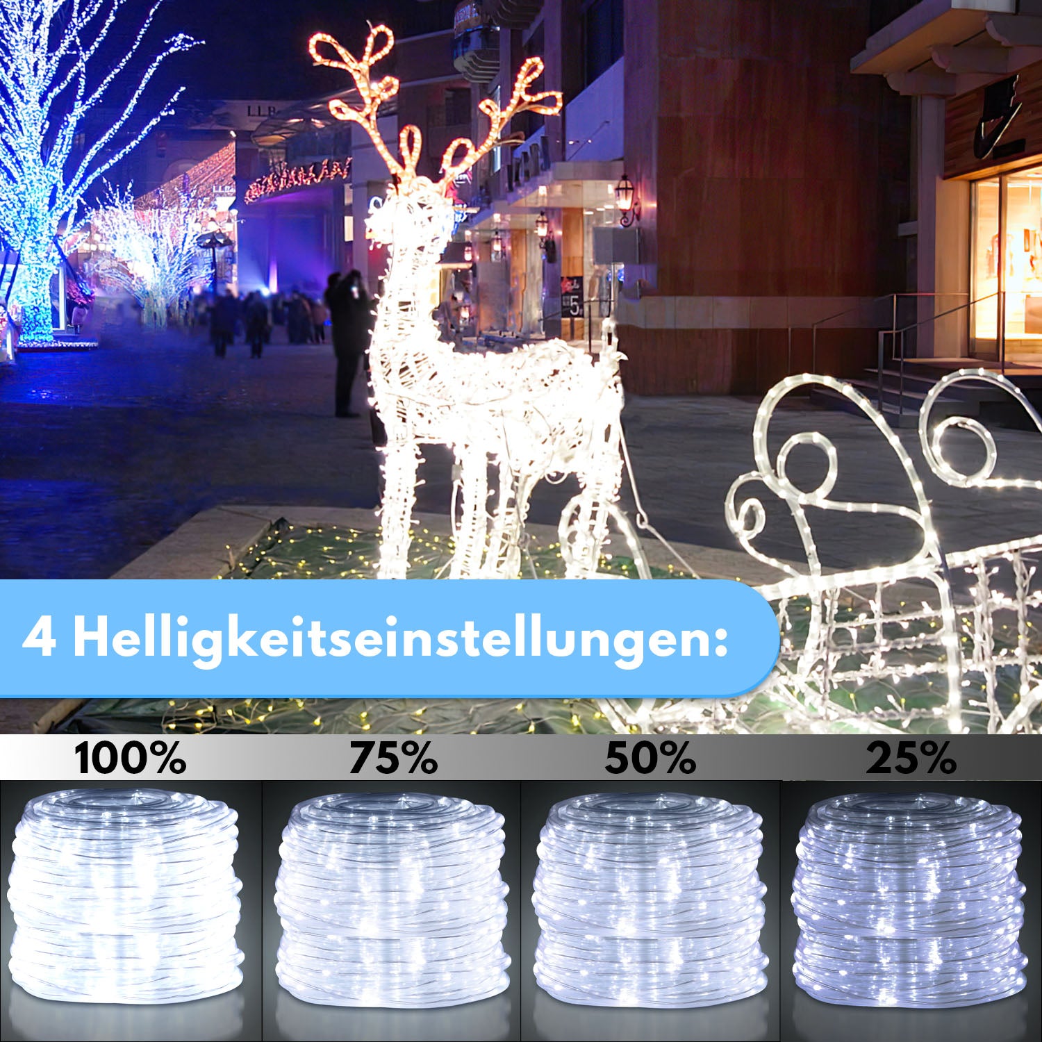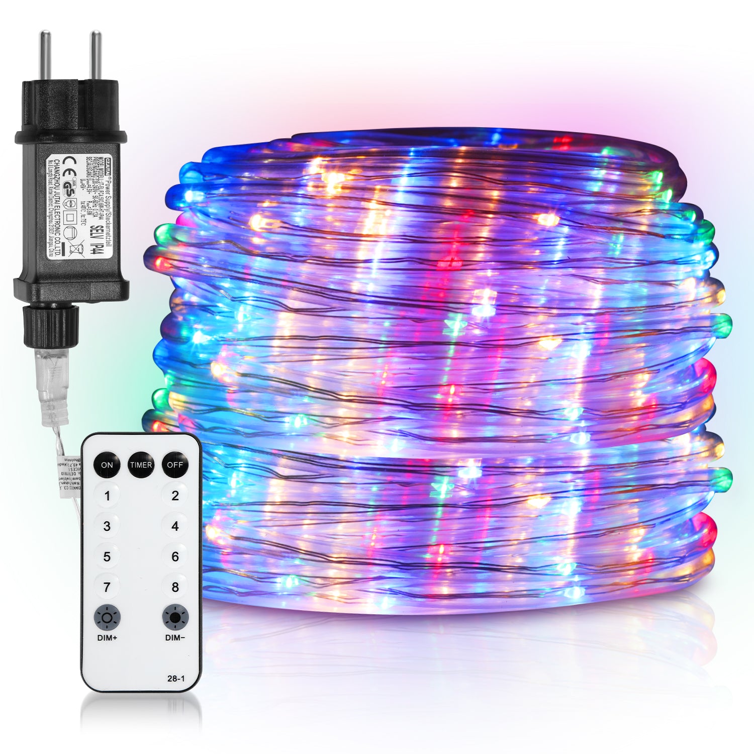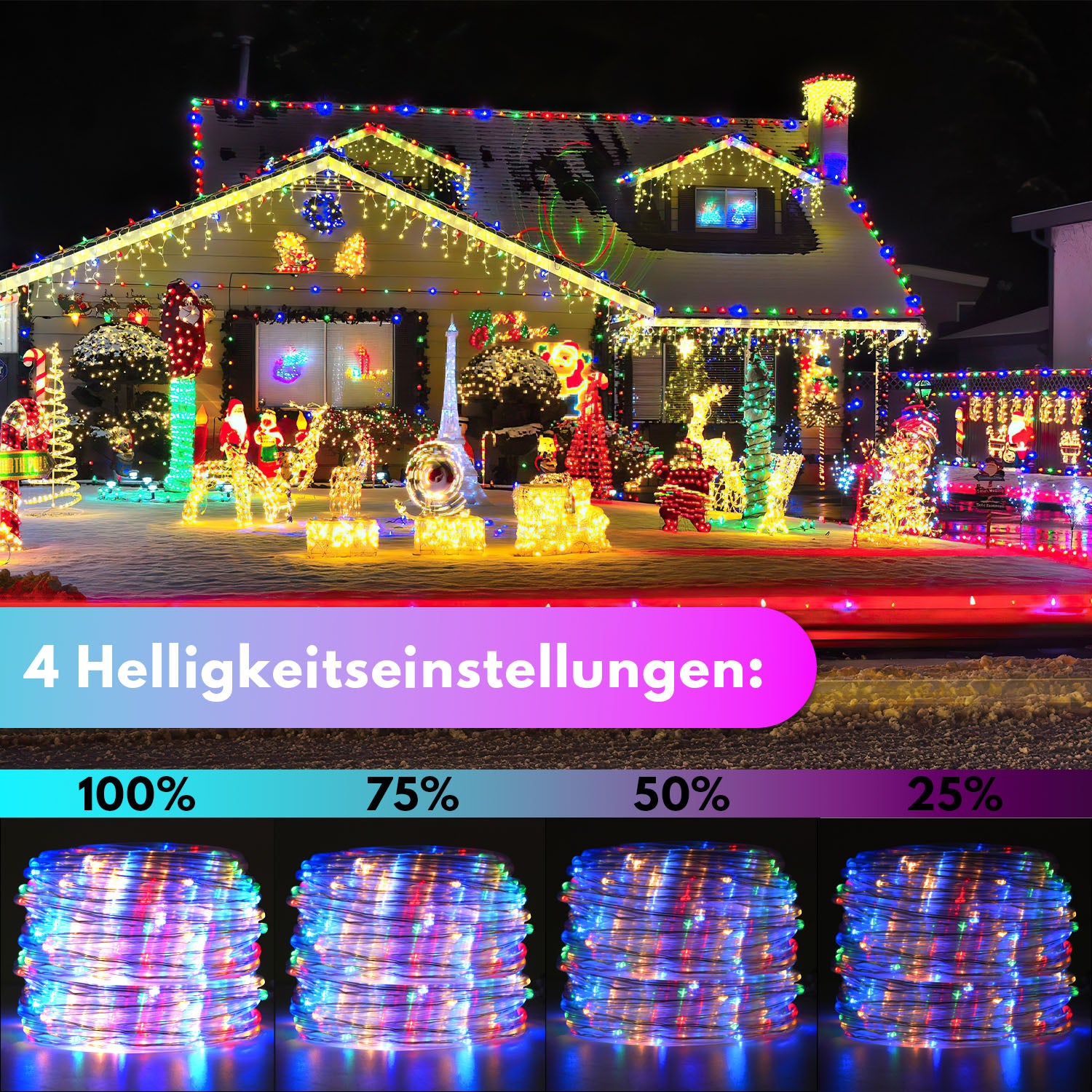 ★Verbesserte Verschleißfestigkeit: Die Lichterkette verfügt über 100/200/300 LEDs auf einer Gesamtlänge von 10/20/30 Metern. Die äußere, transparente Röhre besteht aus hochwertigem PVC und hat verbesserte Reibradgetriebe, die die LEDs im Inneren besser schützen und damit haltbarer und sicherer machen. Die Lichterkette kann aufgrund des geringen Verformungswiderstands in jede gewünschte Form gebracht werden.