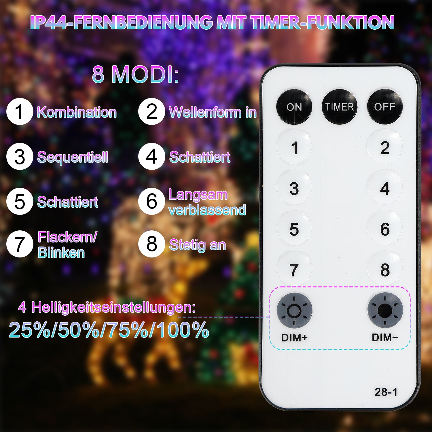 ★Fernsteuerung: Mit der Fernbedienung können Sie Ihren Lichterschlauch bequem steuern. Wählen Sie aus 8 Lichtmodi und 4 einstellbaren Helligkeitsstufen aus. Mit der "Timer"-Taste können Sie die Lichter für 6 Stunden einschalten und für 18 Stunden ausschalten lassen.