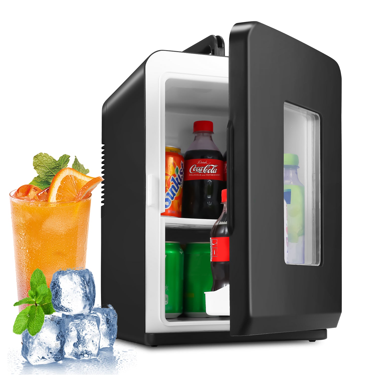🍉【Einfache zu bedienen】Der 15L Kühlschrank mit einem Fassungsvermögen von verfügt über eine Trennwand, die Sie bequem aufbewahren und entnehmen können,die einfach zu verstauen ist und auch Getränke und Lebensmittel aufteilt. Diese Trennwand ist auch abnehmbar, Sie können sie an das Volumen und die Höhe Ihrer Speisen oder Getränke anpassen. An der Tür des Kühlschranks befindet sich auch ein kleiner Aufbewahrungskorb, in dem kleine Lebensmittel wie Snacks und Obst aufbewahrt werden können.