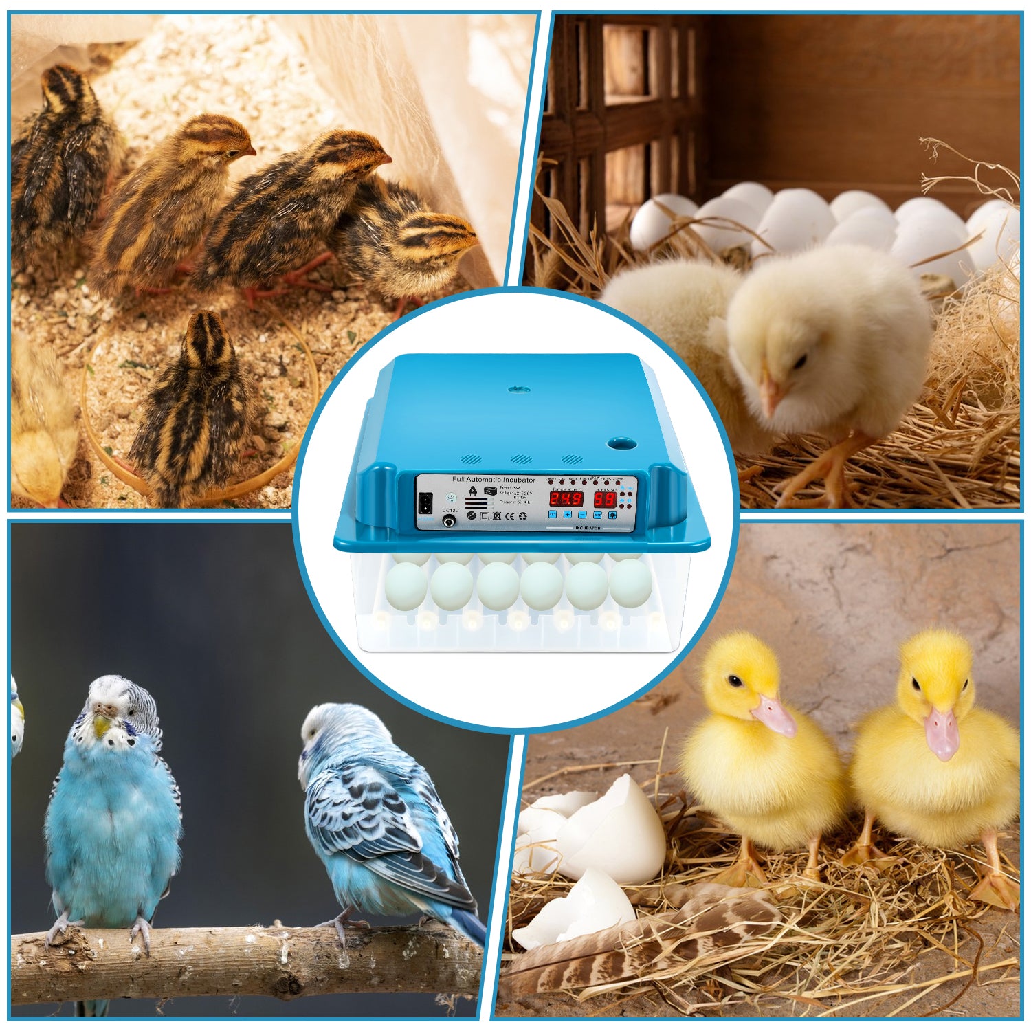 🐣【Vielseitige Anpassung】 Neben Hühnereiern können Sie mit unserem brutautomat vollautomatisch auch problemlos Enteneier, Wellensitticheier, Wachteleier und andere Arten von Eiern ausbrüten! Der brutautomat vollautomatisch passt sich flexibel an verschiedene Eiergrößen an und bietet Platz für bis zu 36 Eier. Somit eignet er sich perfekt für Züchter mit unterschiedlichen Anforderungen.