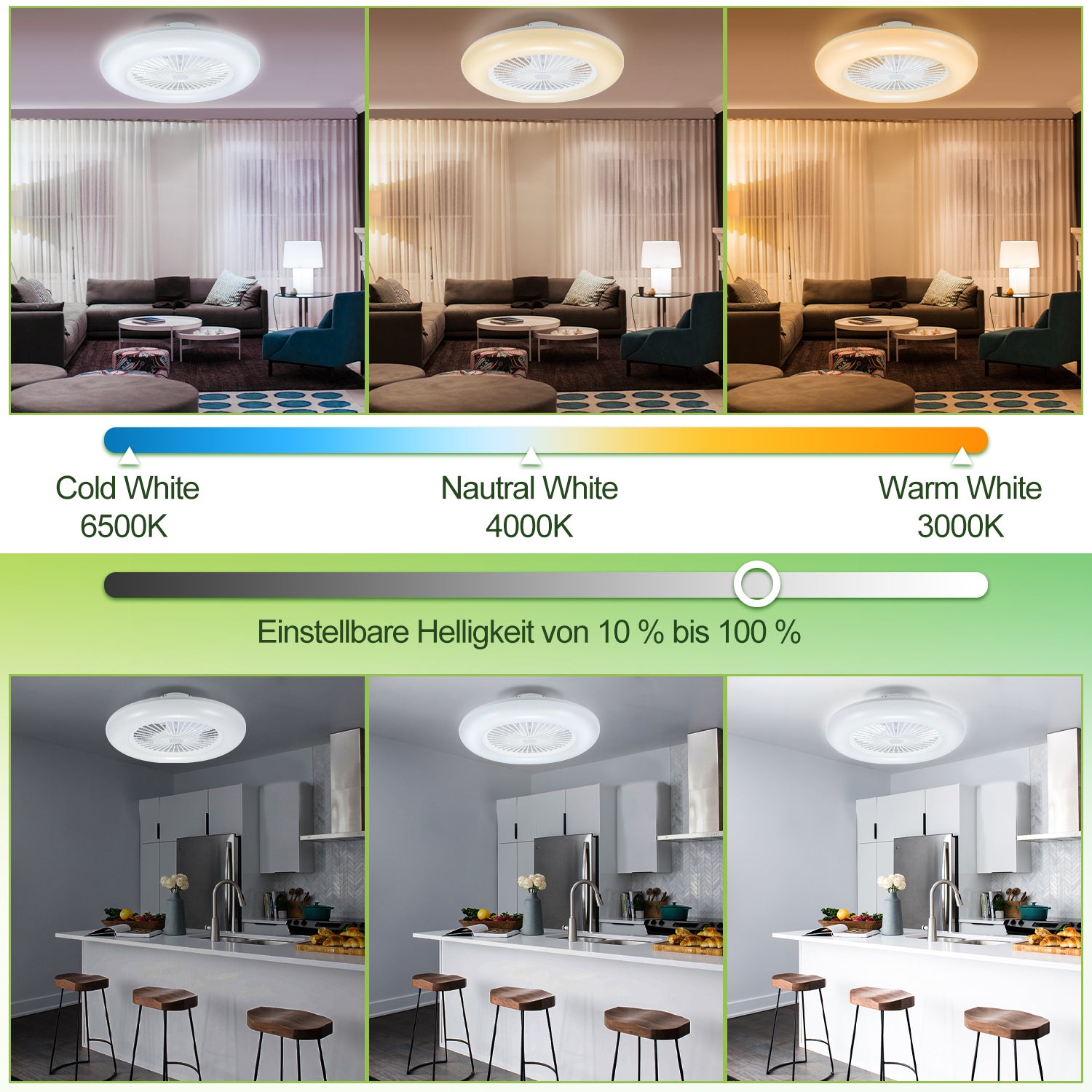 🏡【Stufenloses Dimmen】Die korrelierte Farbtemperatur der modernen Lüfterbeleuchtung beträgt 3000 K bis 6500 K, Warmweiß (3000K), Naturweiß (4000K) und Kaltweiß (6000K).Sie können sie frei dimmen. Ermöglicht stufenloses und schnelles Dimmen und erfüllt Ihre verschiedenen Lichtanforderungen in Ihrem Lebe. Das Deckenventilatorlicht verfügt über eine Timing-Ausschaltfunktion.