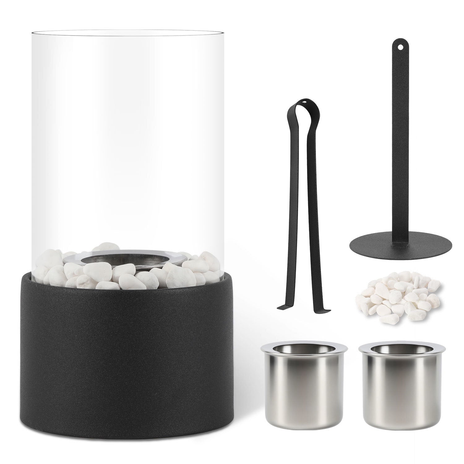 Brennzeit: Der Kamin wird mit 2 Brenncups geliefert. Jeder Brenncup fasst 170 ml Ethanol und brennt bei Windstille ca. 60 Minuten. Zudem ist eine Zange enthalten, die das Auswechseln der Brenncups erleichtert.