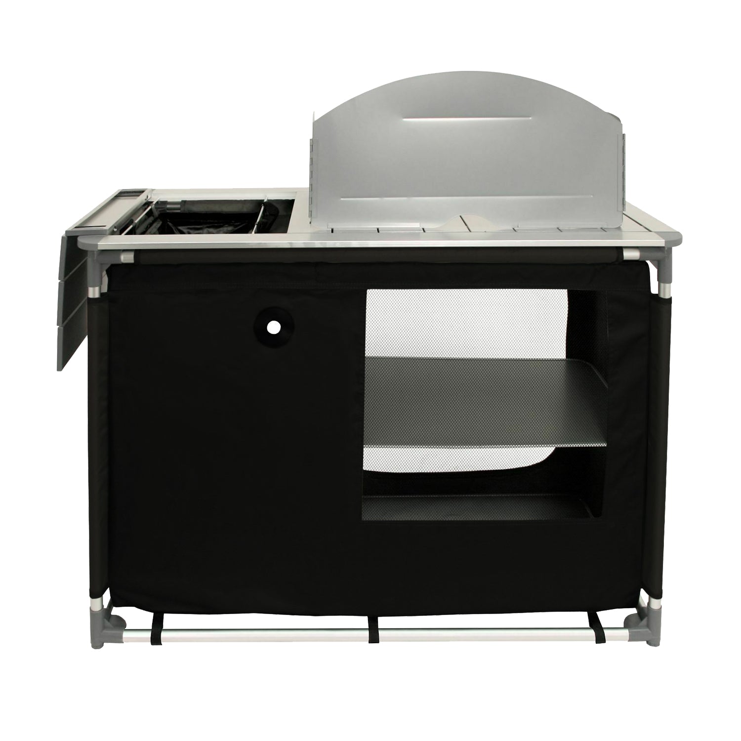 Hochwertige Campingküchen:Höhe Arbeitsplatte: ca.80 cm;Belastbarkeit: max.30 kg (Gleichmäßige Verteilung);Totalmaße (WxDxH): ca.174 x 40 x 110 cm;Windschutz (BxT): ca.61 x 33 cm;Füße Justierbar: Bis zu 1,5 cm.