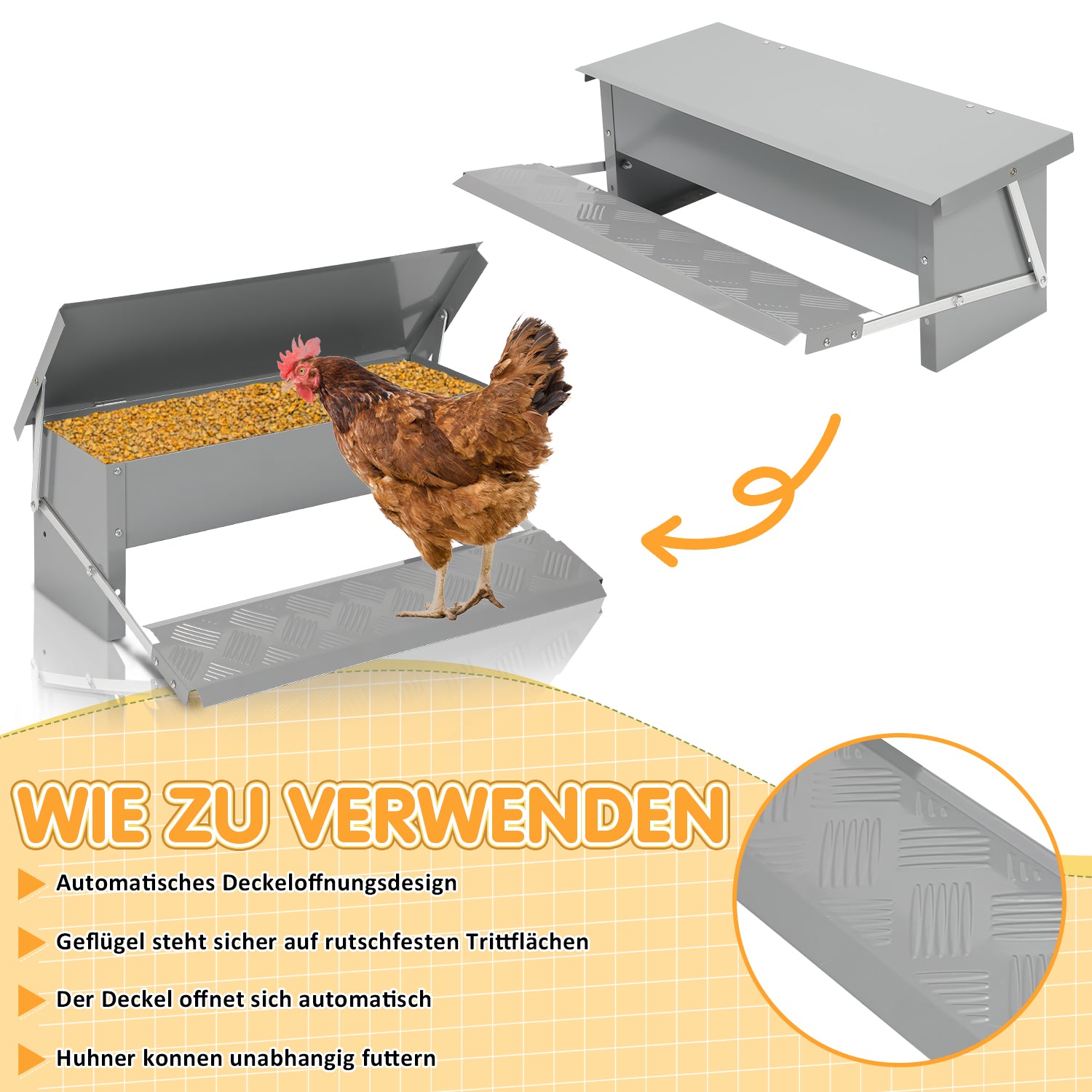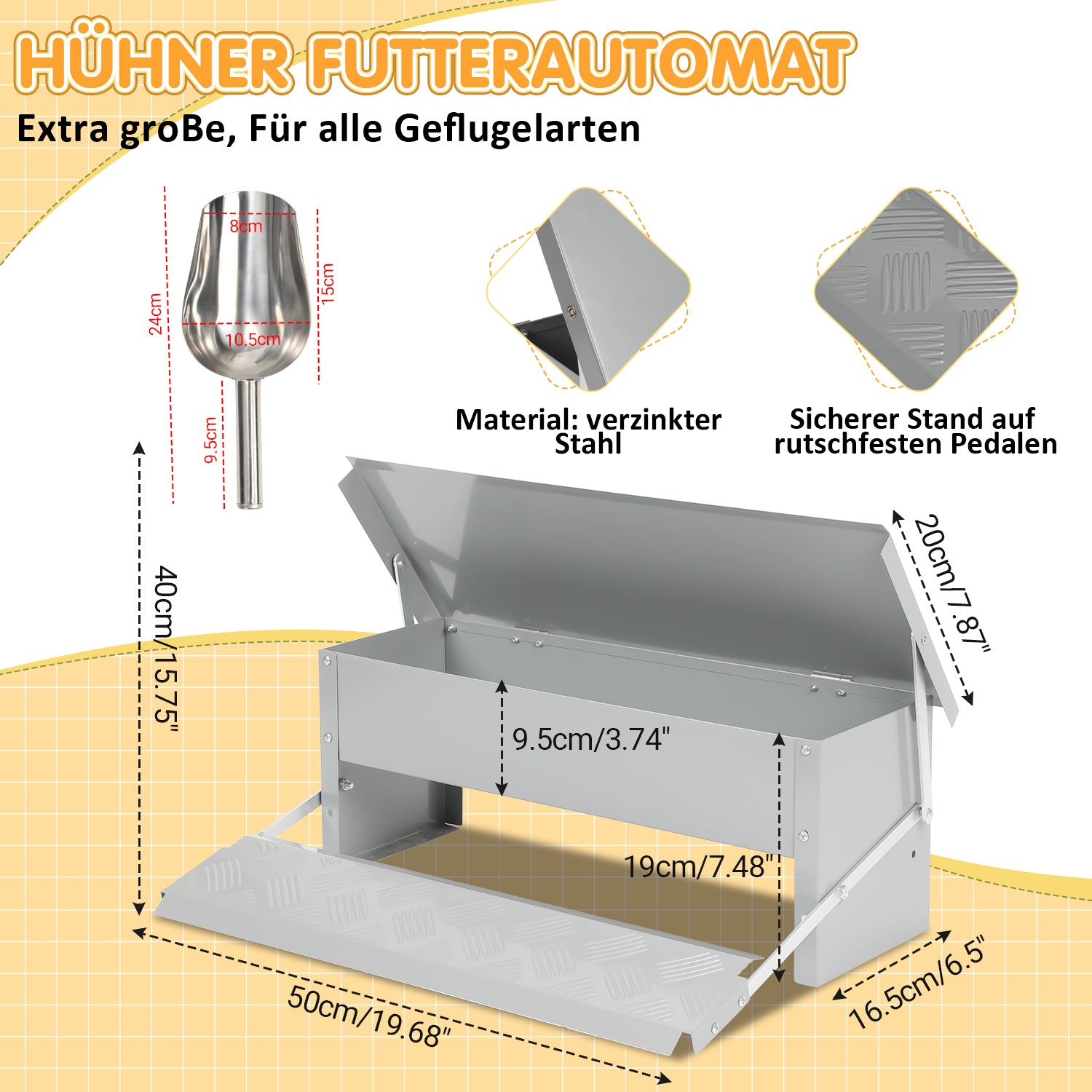 🐥 Reduzierte Futterverschwendung: Dank des intelligenten Pedalmechanismus wird Futter nur dann ausgegeben, wenn die Tiere danach suchen. Dies verhindert Überfütterung, spart Futterkosten und steigert die Fütterungseffizienz.