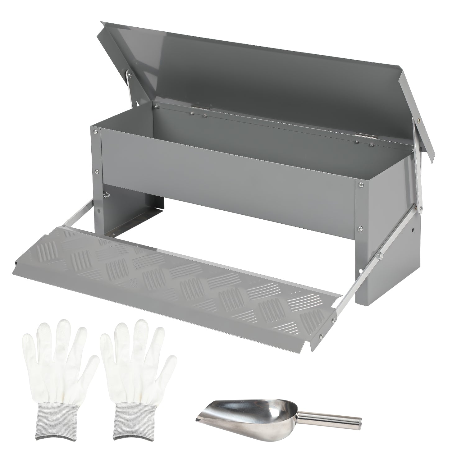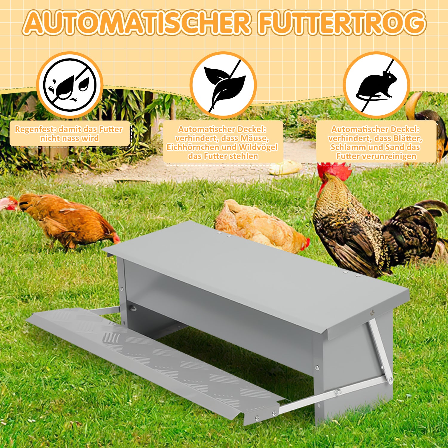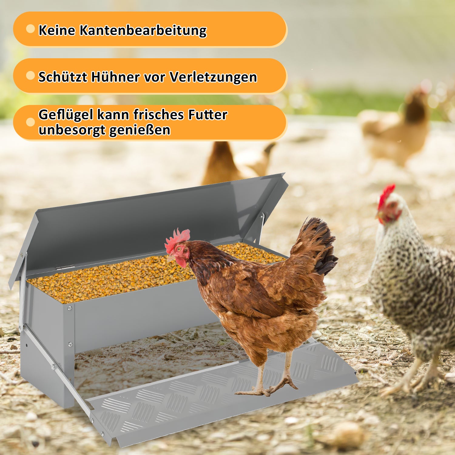 🐥 Robust & Langlebig: Hergestellt aus korrosions- und wasserbeständigem, verzinktem Stahl, ist der Futterspender ideal für den Einsatz im Freien geeignet. Das abgedeckte Design schützt das Futter zuverlässig vor Schädlingen wie Mäusen, Vögeln und anderen Tieren.