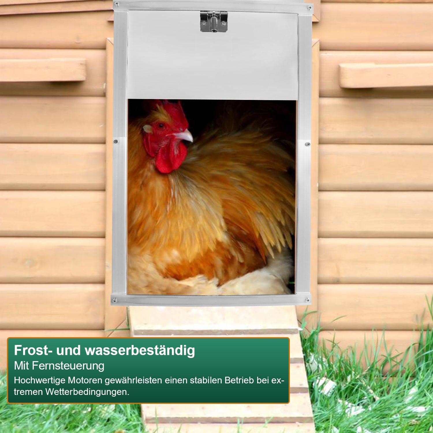 Wenn Sie bei der Arbeit Zeit sparen wollen, nutzen Sie unsere Hühnerklappe.