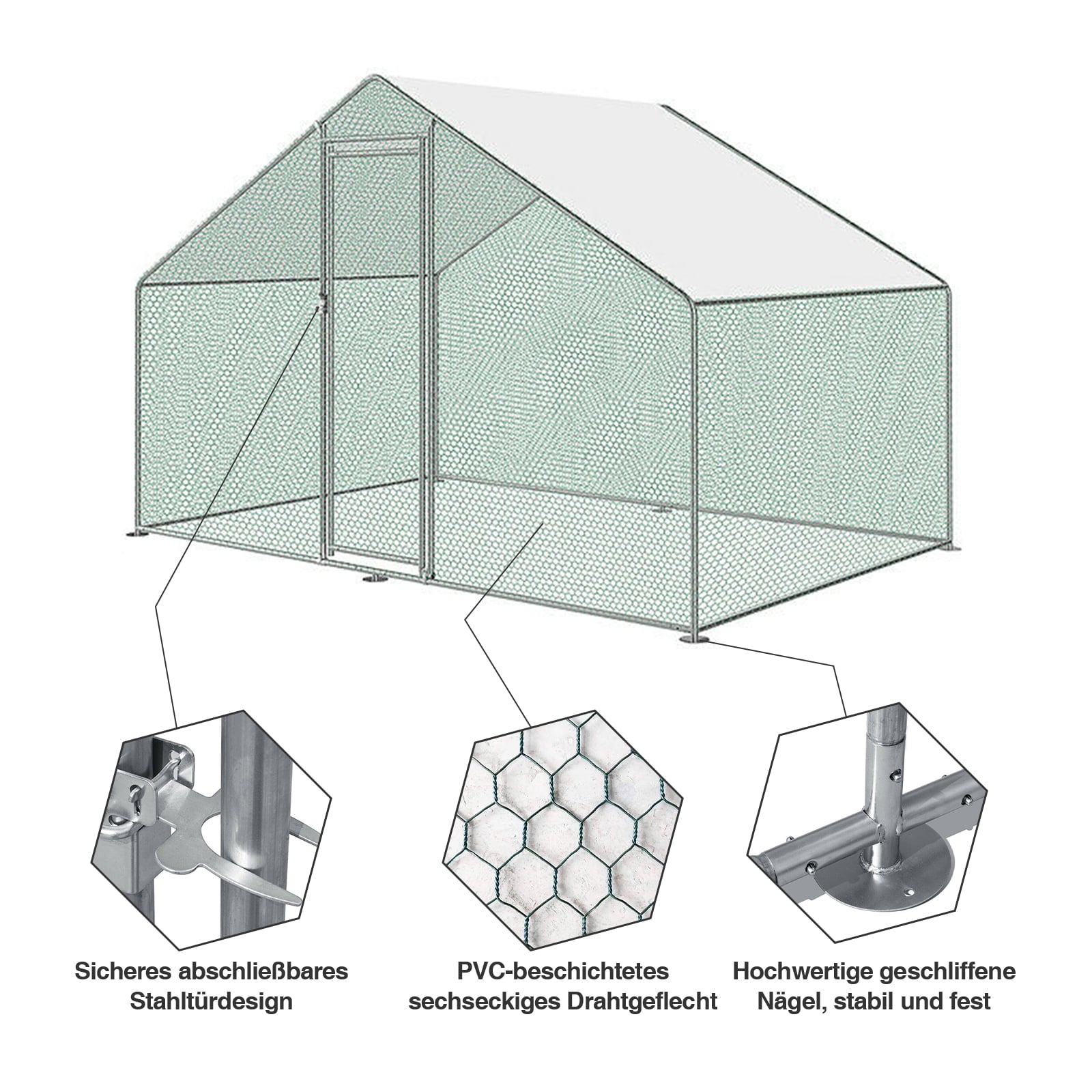 ➣Langlebige Stahlkonstruktion:Hühnerstall Hergestellt aus hochwertigem Stahlrahmen, Abmessungen: 3 x 2 x 2 m (B x T x H), für Geflügel, um freien Raum im Inneren zu haben und einfach zu installieren oder zu demontieren und einfach zu bedienen ist.