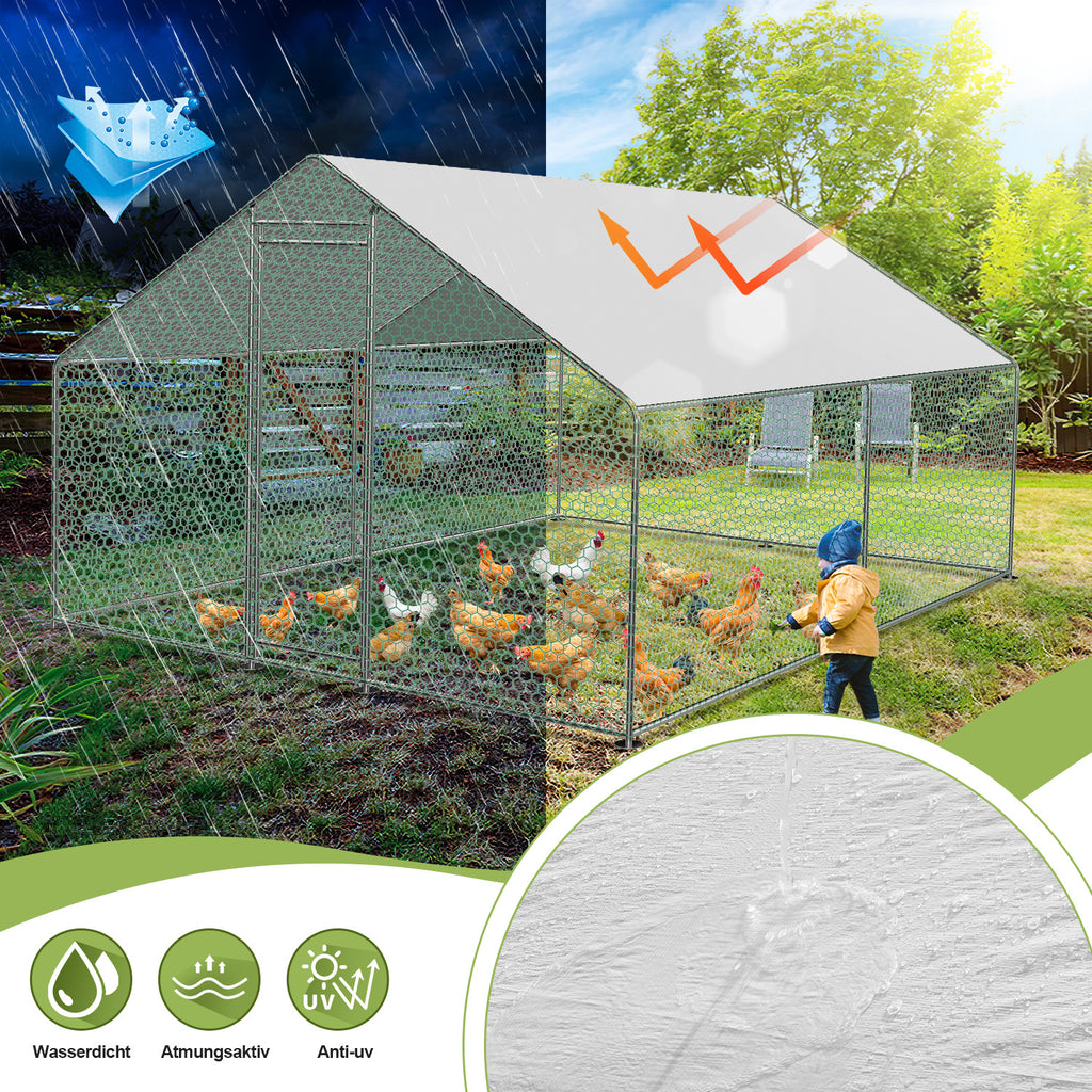 SWANEW Hühnerstall Freilaufgehege, 3x3x2m, Verzinkter Stahl Kleintierstall Hühnerhaus