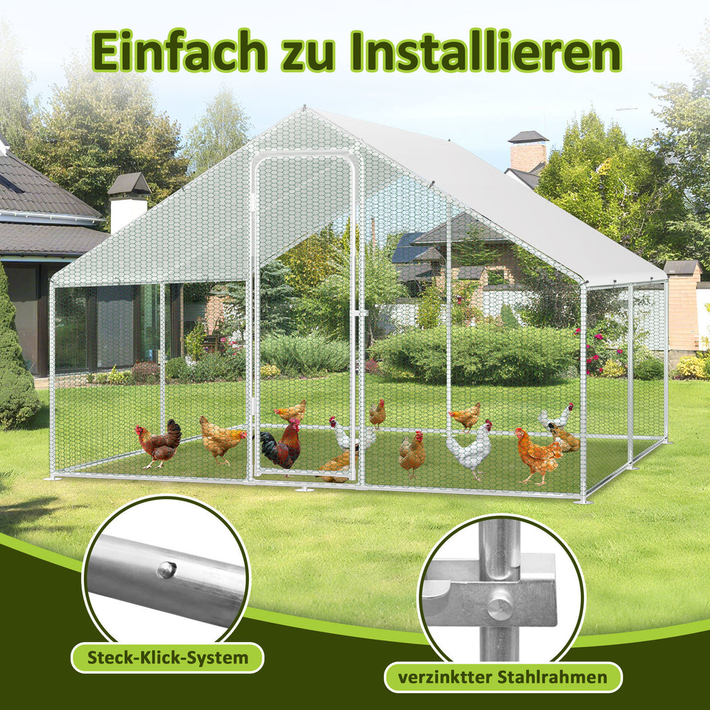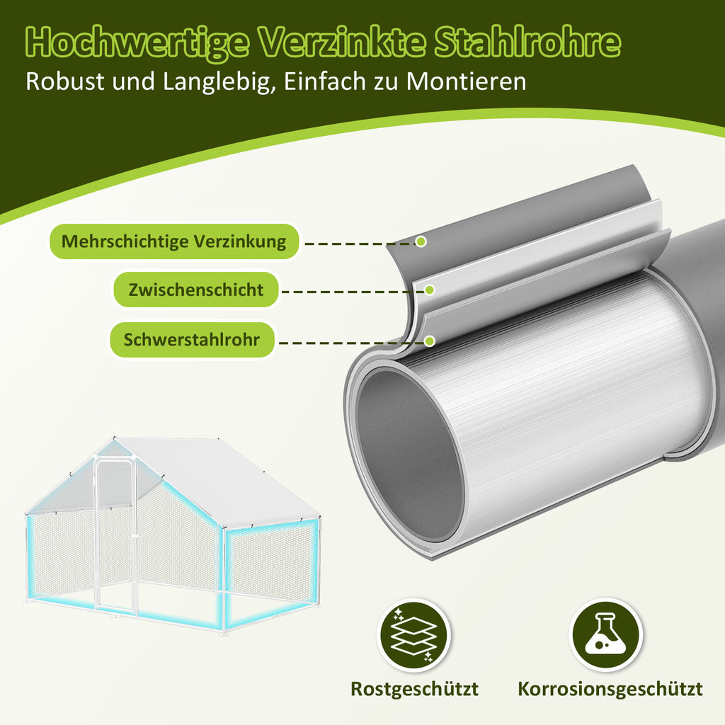 SWANEW Hühnerstall Freilaufgehege, 3x3x2m Voliere, Kleintierstall