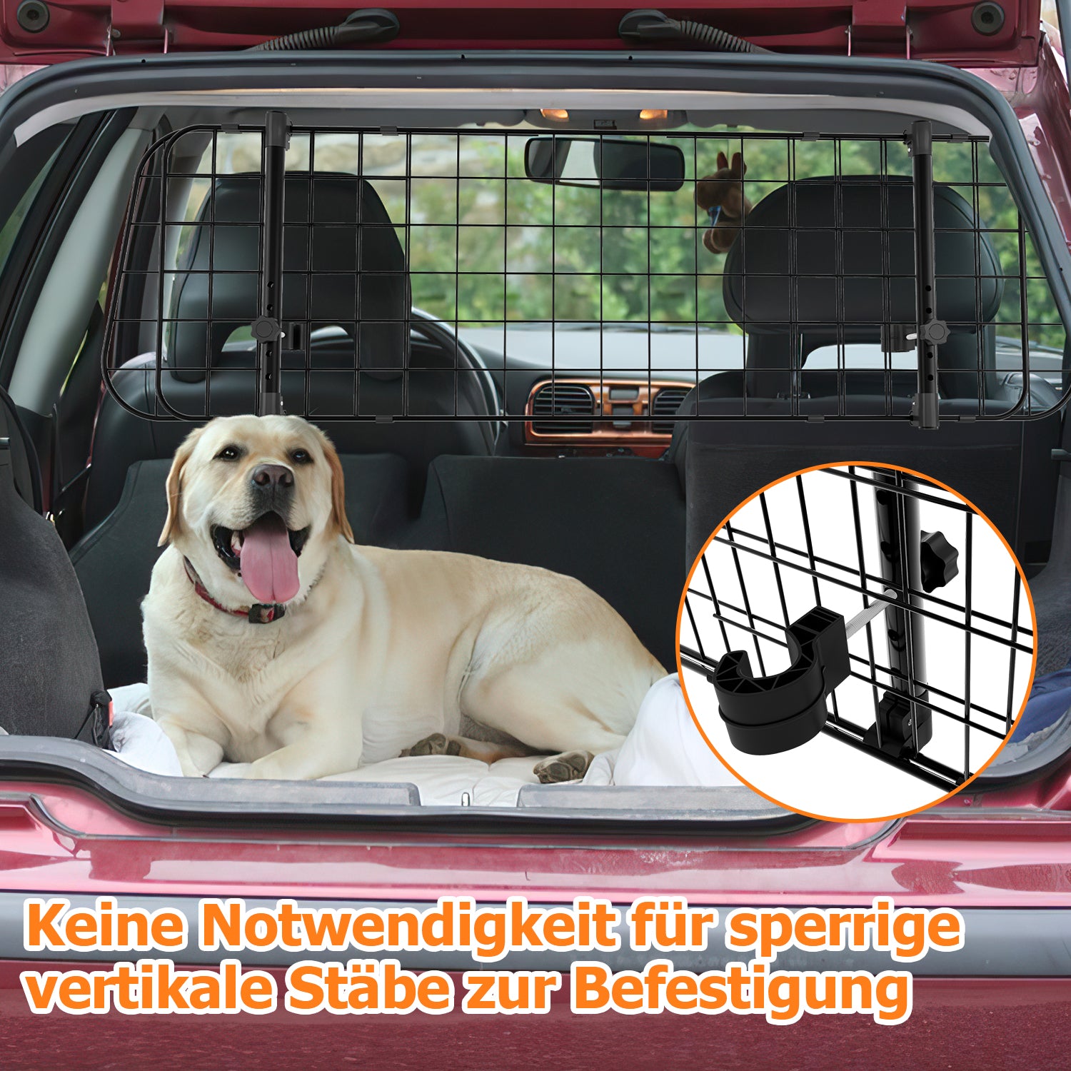 【Einstellbare Breite】Die Höhe des Hundegitters beträgt 30 Zentimeter, und die Breite kann stufenlos von 90 Zentimeter bis 145 Zentimeter eingestellt werden, um die Anwendungsanforderungen verschiedener Szenarien zu erfüllen. Der Abstand zwischen Gitter und Kopfstütze kann separat eingestellt werden, um eine perfekte Trennung während der Fahrt zu erreichen.