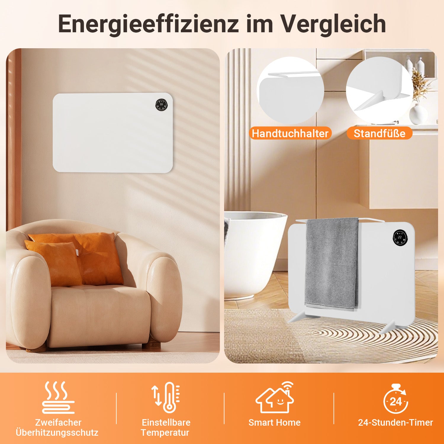 Vielseitige Funktionalität: Dieser 450-W-Heizkörper kann sowohl freistehend als auch an der Wand montiert werden und lässt sich somit flexibel an die räumlichen Gegebenheiten anpassen. Er eignet sich für Schlafzimmer, Wohnzimmer, Badezimmer und andere Räume und verfügt über einen integrierten Handtuchhalter zum schnellen Trocknen feuchter Handtücher, wodurch er Funktionalität mit Anpassungsfähigkeit verbindet.