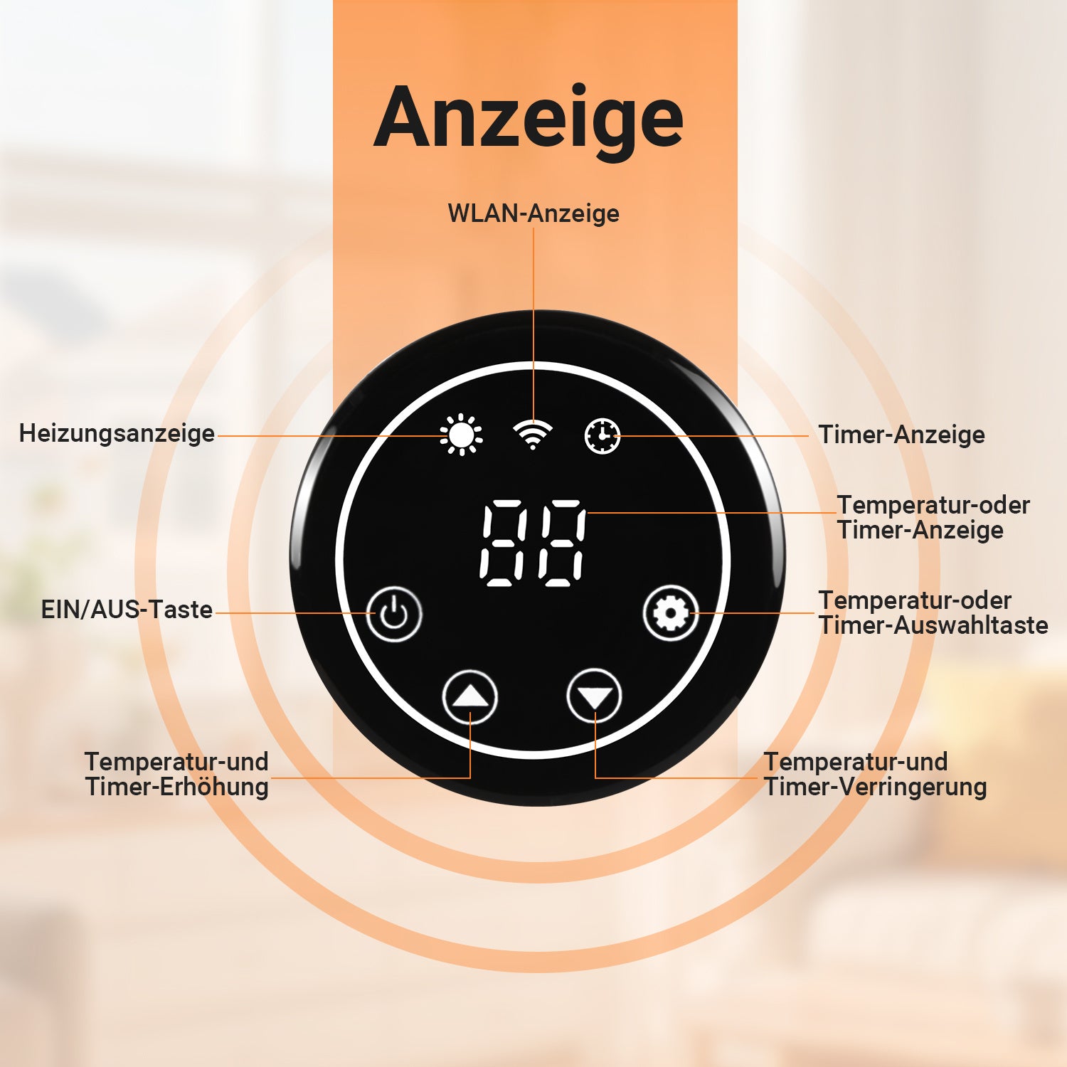 Intelligente Bedienung: Unterstützt die doppelte Steuerung über Fernbedienung und WiFi-fähige Smart-App für eine benutzerfreundliche Bedienung. Das frontseitige LED-Display bietet eine klare Temperaturanzeige und eine intuitive Bedienung, sodass die Überwachung und Einstellung mühelos erfolgen und der Komfort erhöht wird.