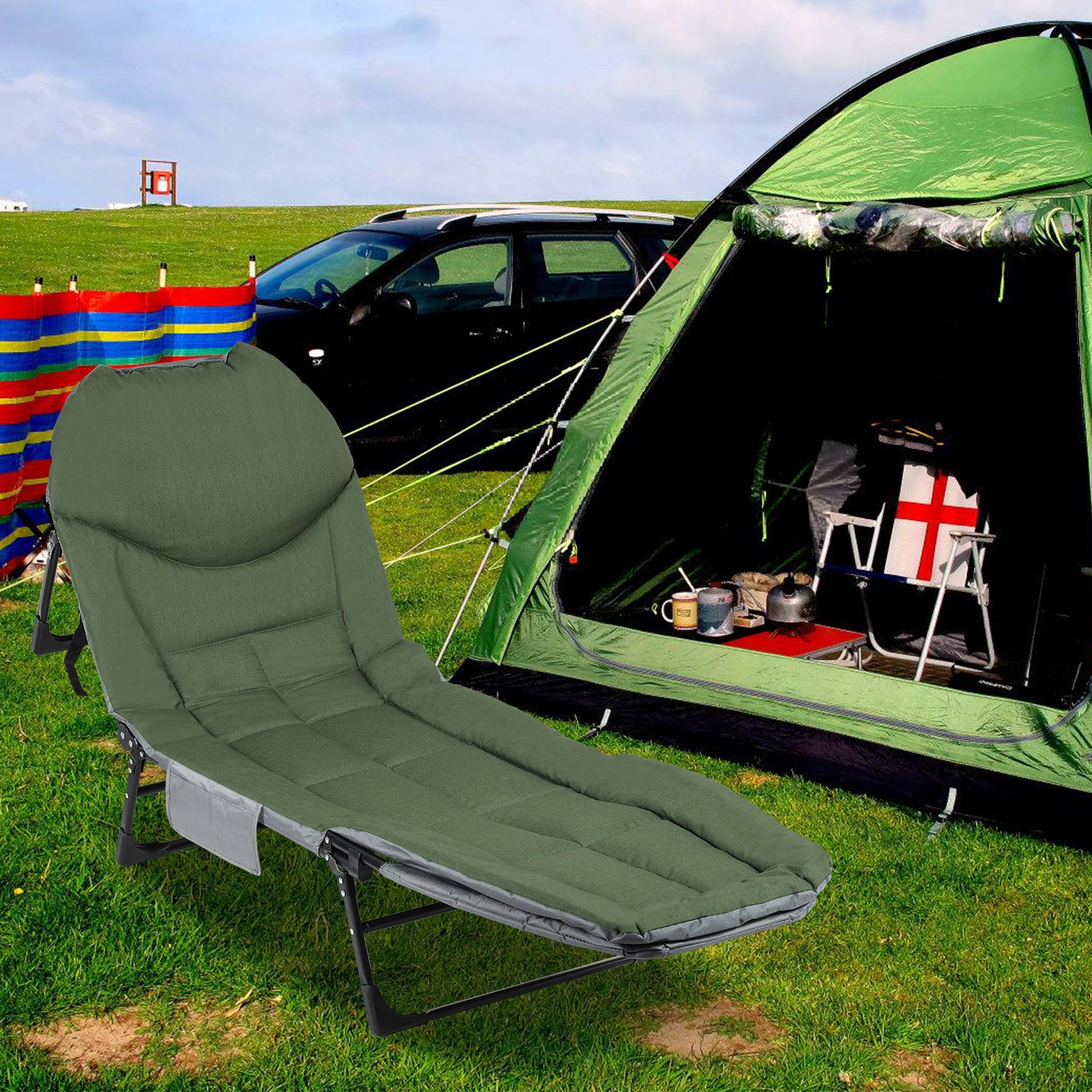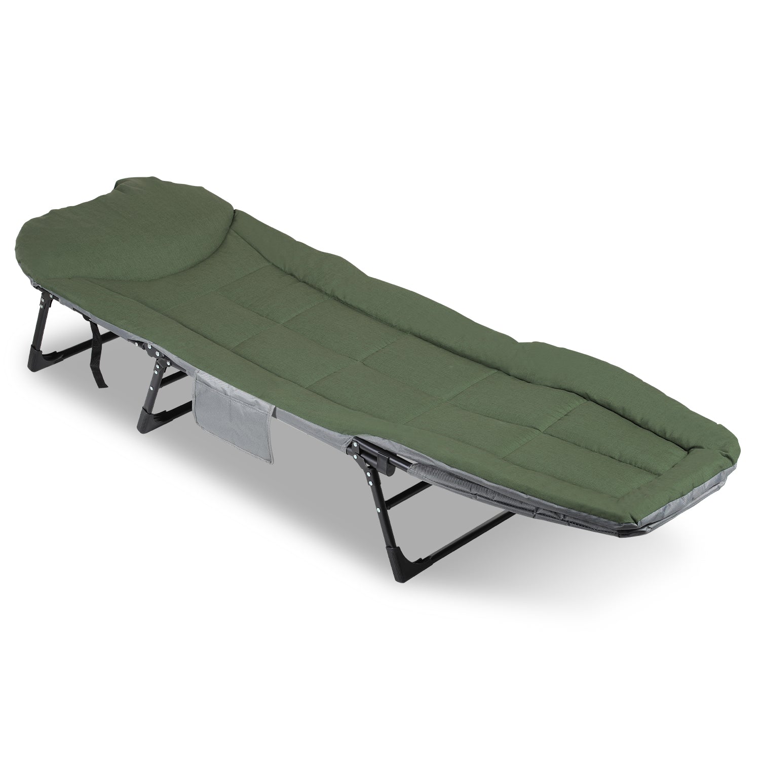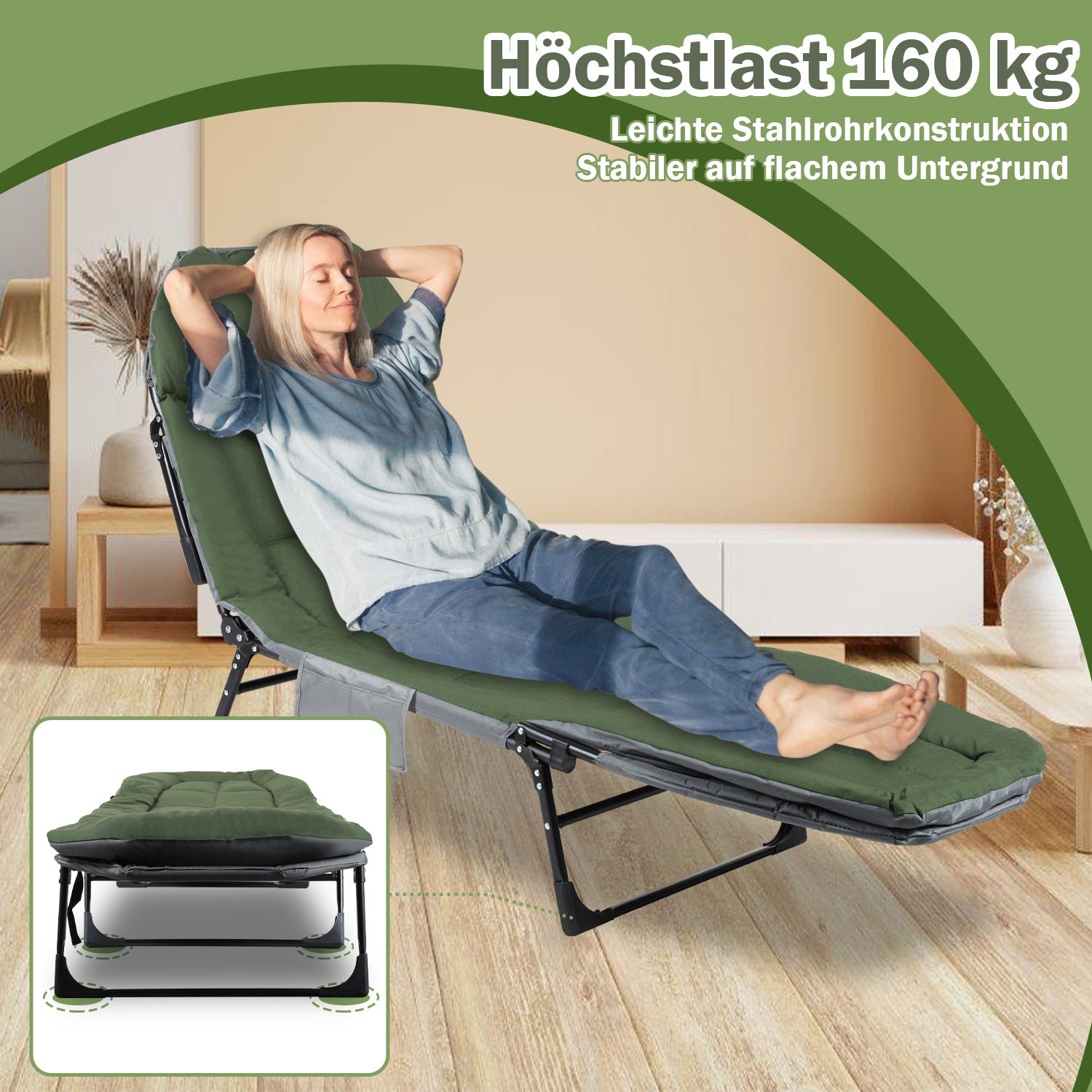 ☆ Dickeres Futter für mehr Komfort: Ein Feldbett mit weicher Polsterung, gefüllt mit verdicktem Baumwollmaterial, ist weicher und komfortabler zu bedienen, ausgestattet mit stabilen Sitzkissen und Seitentaschen für persönliche Gegenstände.