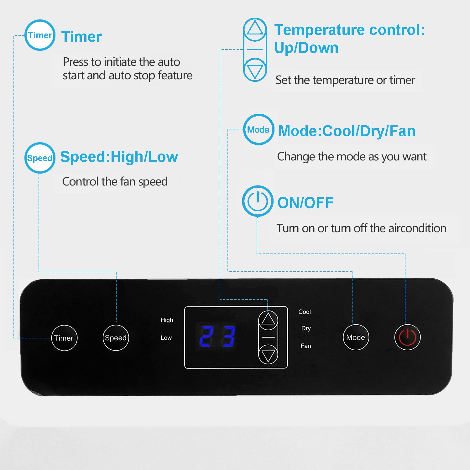 💧Intelligente temperaturregelung: Der einstellbare 24-Stunden-Timer kann die Raumtemperatur auf 16 bis 32 ° C (61 bis 90 ° F) abkühlen. Sie können ganz einfach Zeit, Temperaturgeschwindigkeit und Modus einstellen. Perfekt für zu Hause oder im Büro!Diese Mobile Klimaanlage misst 31.5 x 31 x 70 cm und mit 4 eingebauten Rädern, sodass Sie das Gerät problemlos in jeden Raum mit Fenster bewegen können.