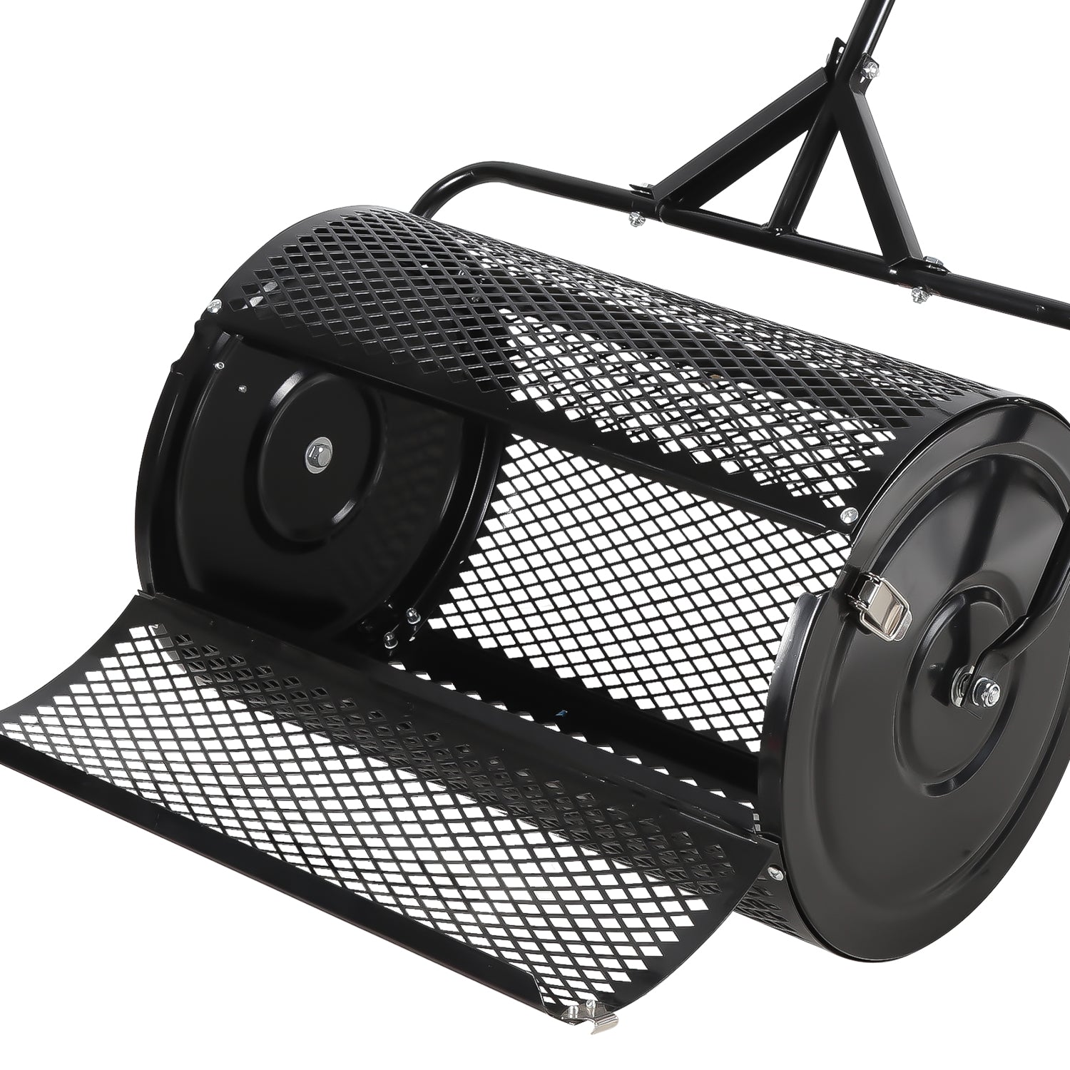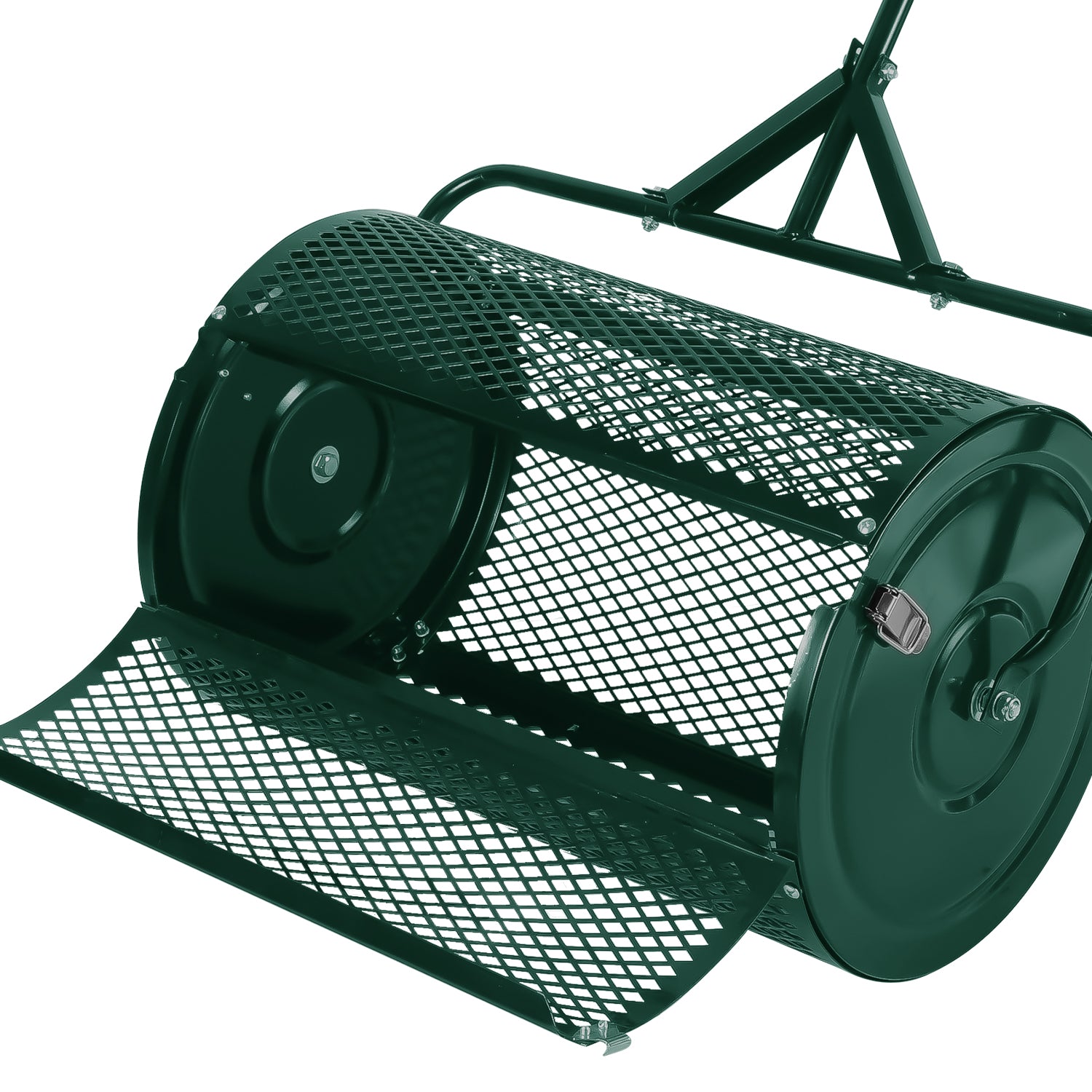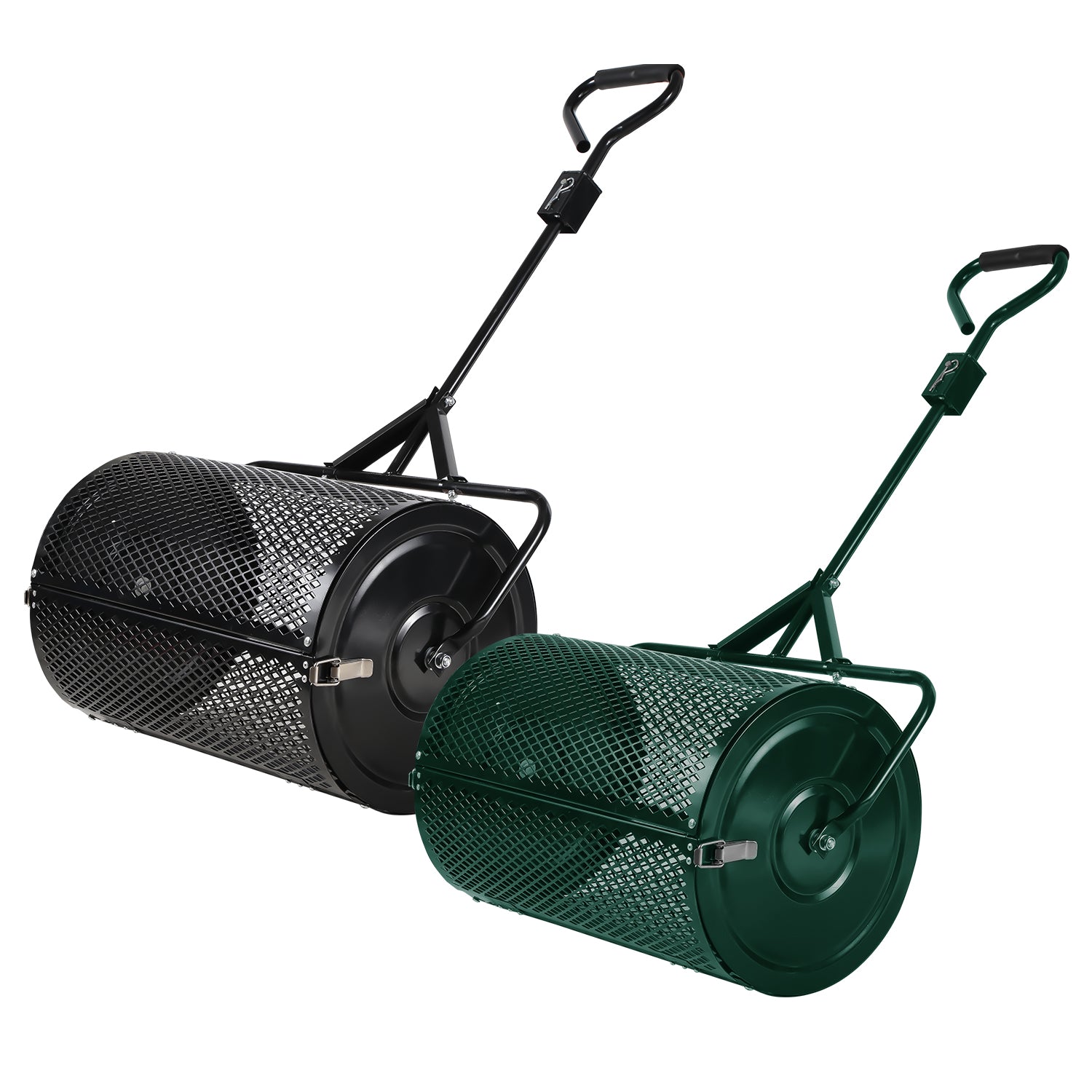 WALZENDESIGN FÜR GLEICHMÄßIGE AUSSAAT: Das einzigartige Walzendesign und die gleichmäßige Maschenstruktur helfen dem Kompoststreuer, Saatgut und Dünger gleichmäßig zu verteilen, und gleichzeitig kann er größere Partikel effektiv trennen, um ungleichmäßige Aussaat zu vermeiden.