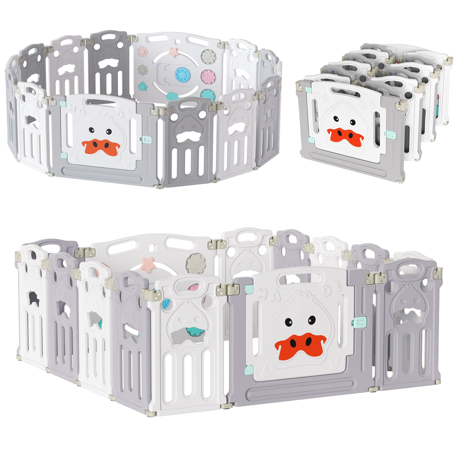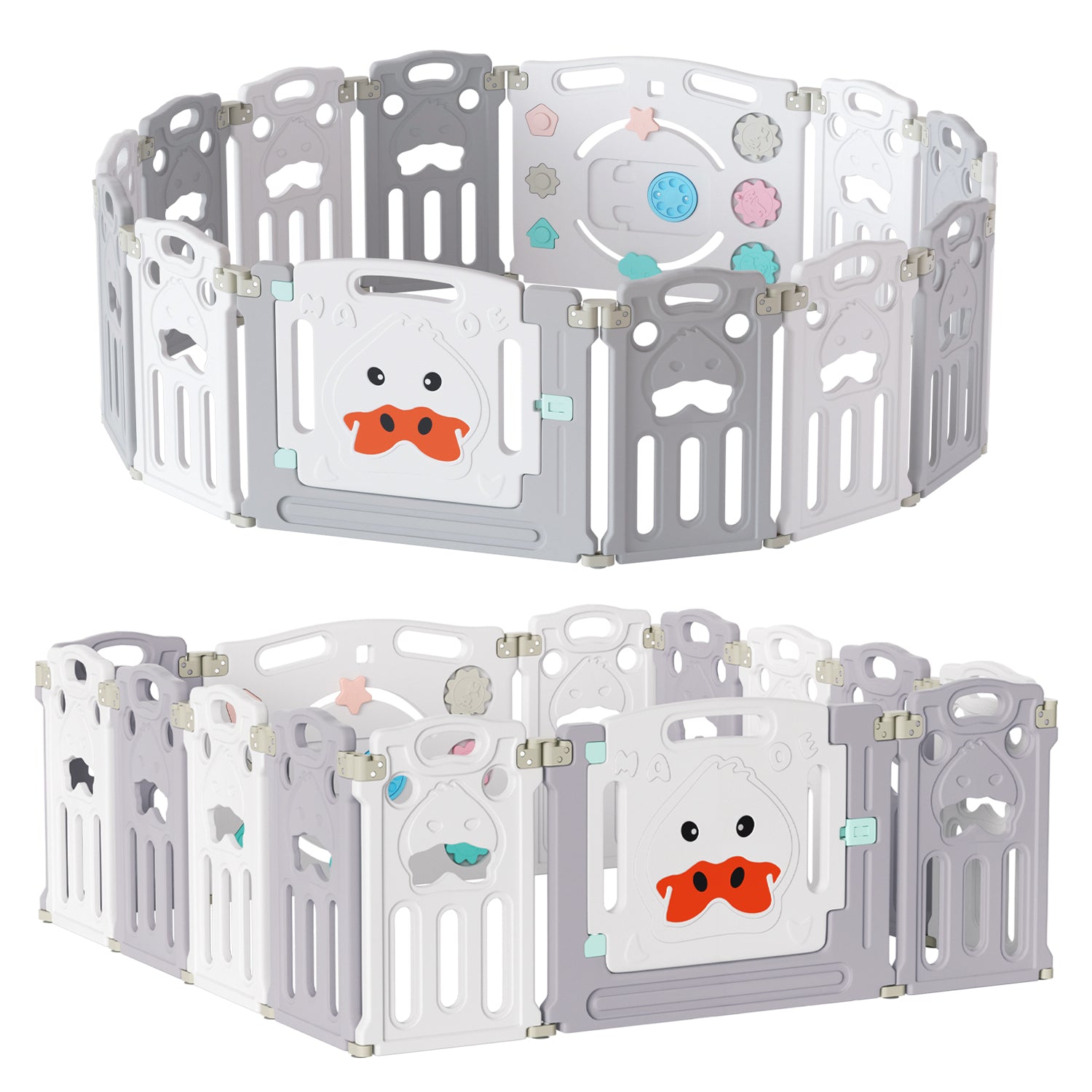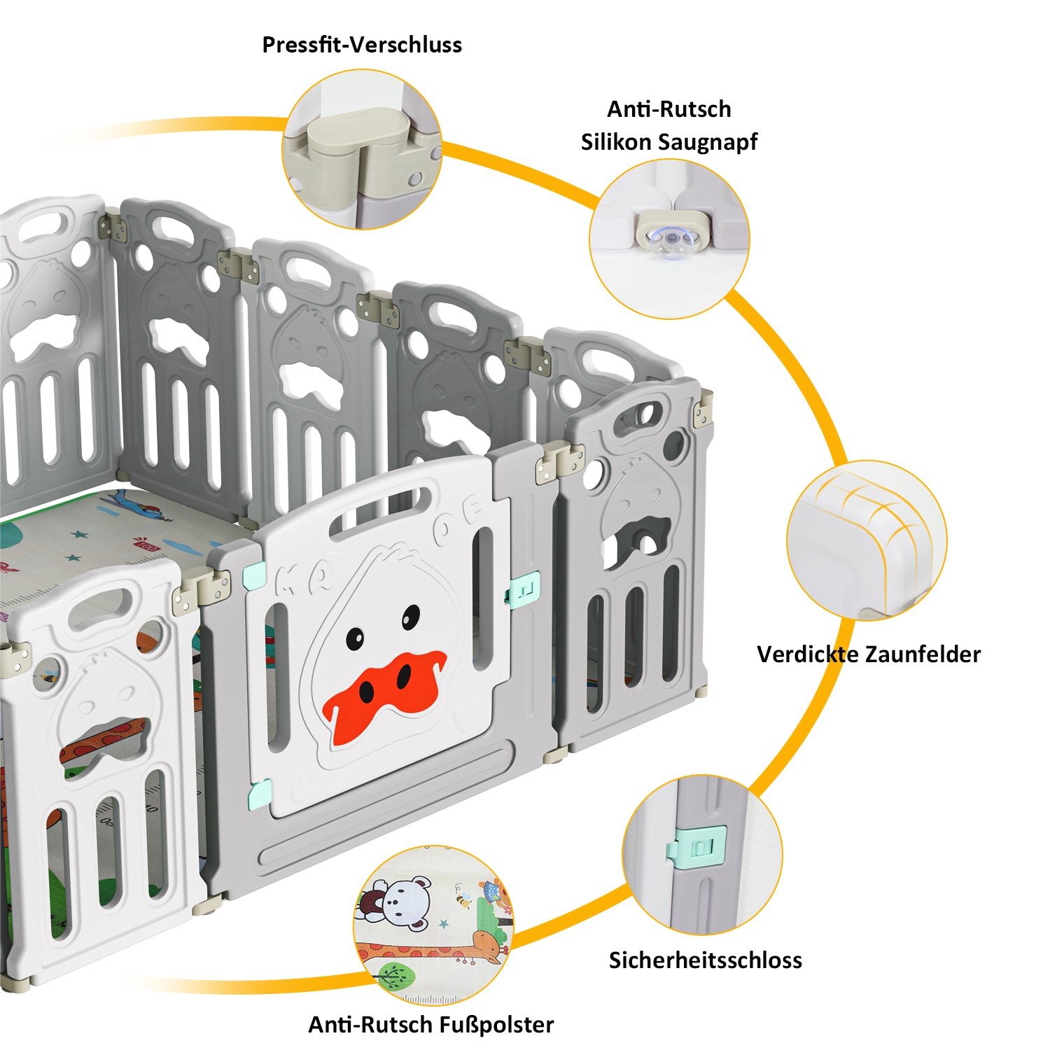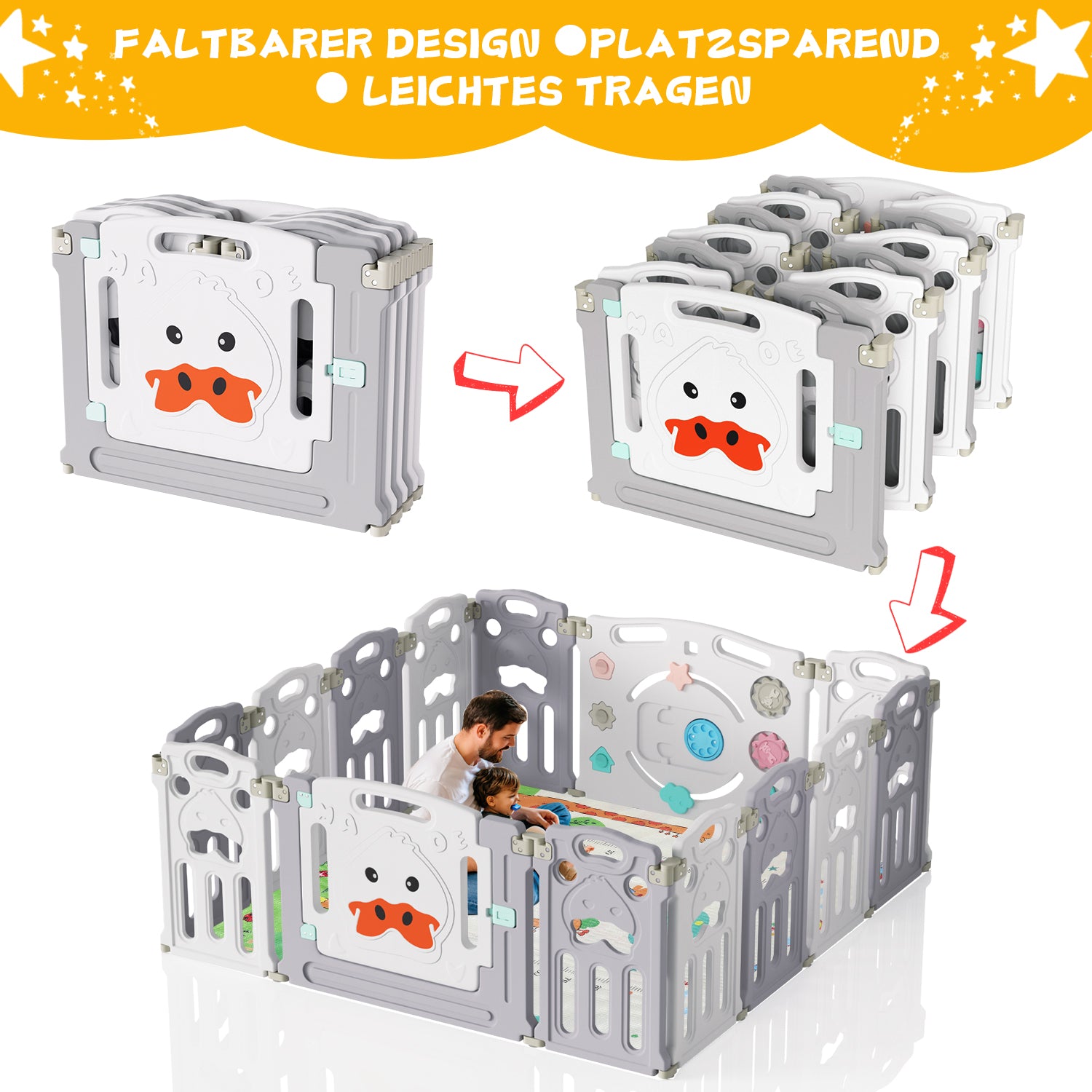 👼【Anpassungsfähigkeit】Dieser laufstall baby 14 Paneelen, darunter 12 kleinere Paneelen, 1 Türpaneel und 1 Spielpaneel. Diese Struktur erlaubt es Ihnen, den Zaun ganz nach Ihren Bedürfnissen neu zu organisieren oder als Raumteiler zu verwenden. Mit den praktischen Drehknöpfen zwischen den Paneelen können Sie die Größe und Form des Kindersicherheitszauns mühelos anpassen.