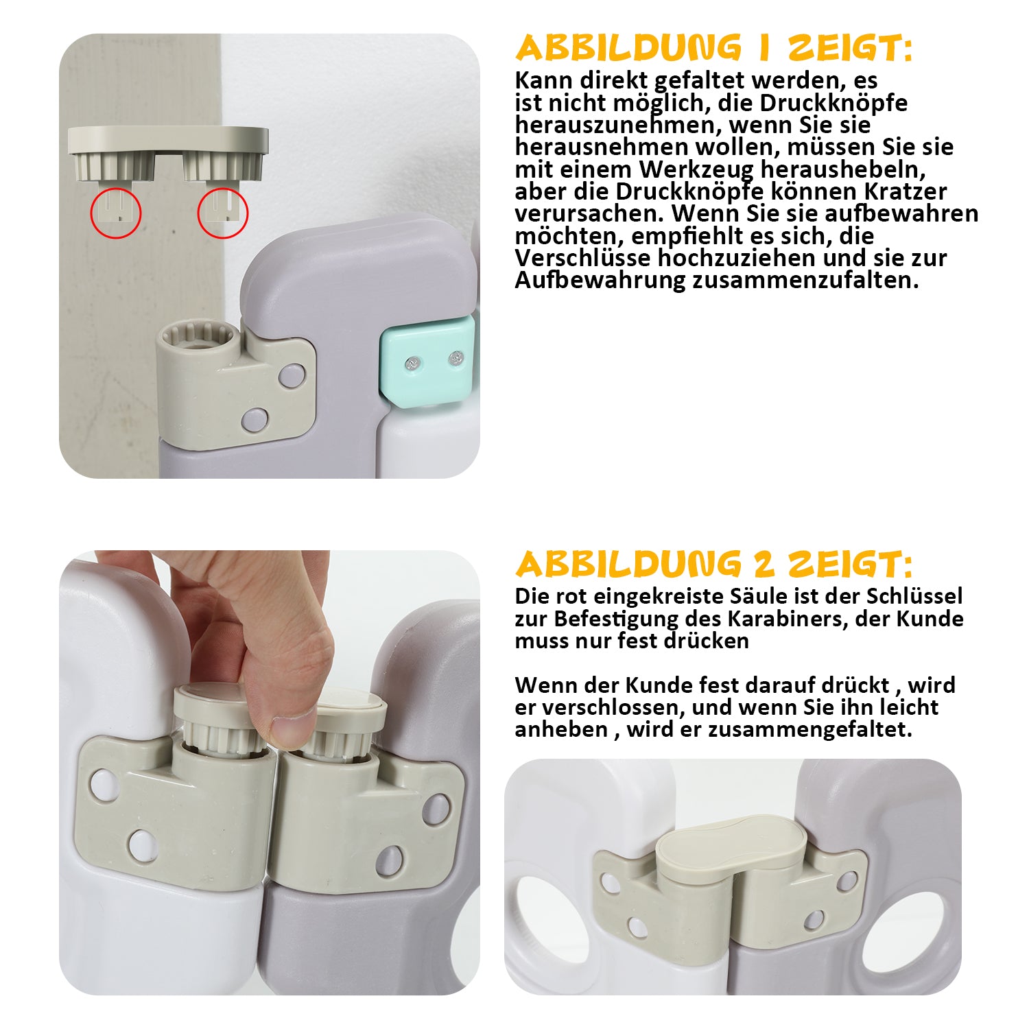 👼【Einfache Lagerung】Die Lagerung des Kindersicherheitszauns ist ein Kinderspiel. Sie können den Zaun problemlos zusammenfalten, um Platz zu sparen. Hierbei ist es nicht notwendig, jedes Paneel einzeln zu demontieren. Stattdessen können Sie einfach die Verschlussschrauben zwischen den Paneelen lockern, um den Kindersicherheitszaun zusammenzufalten und platzsparend zu verstauen.