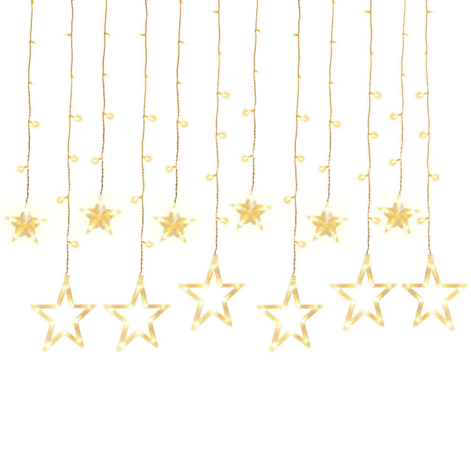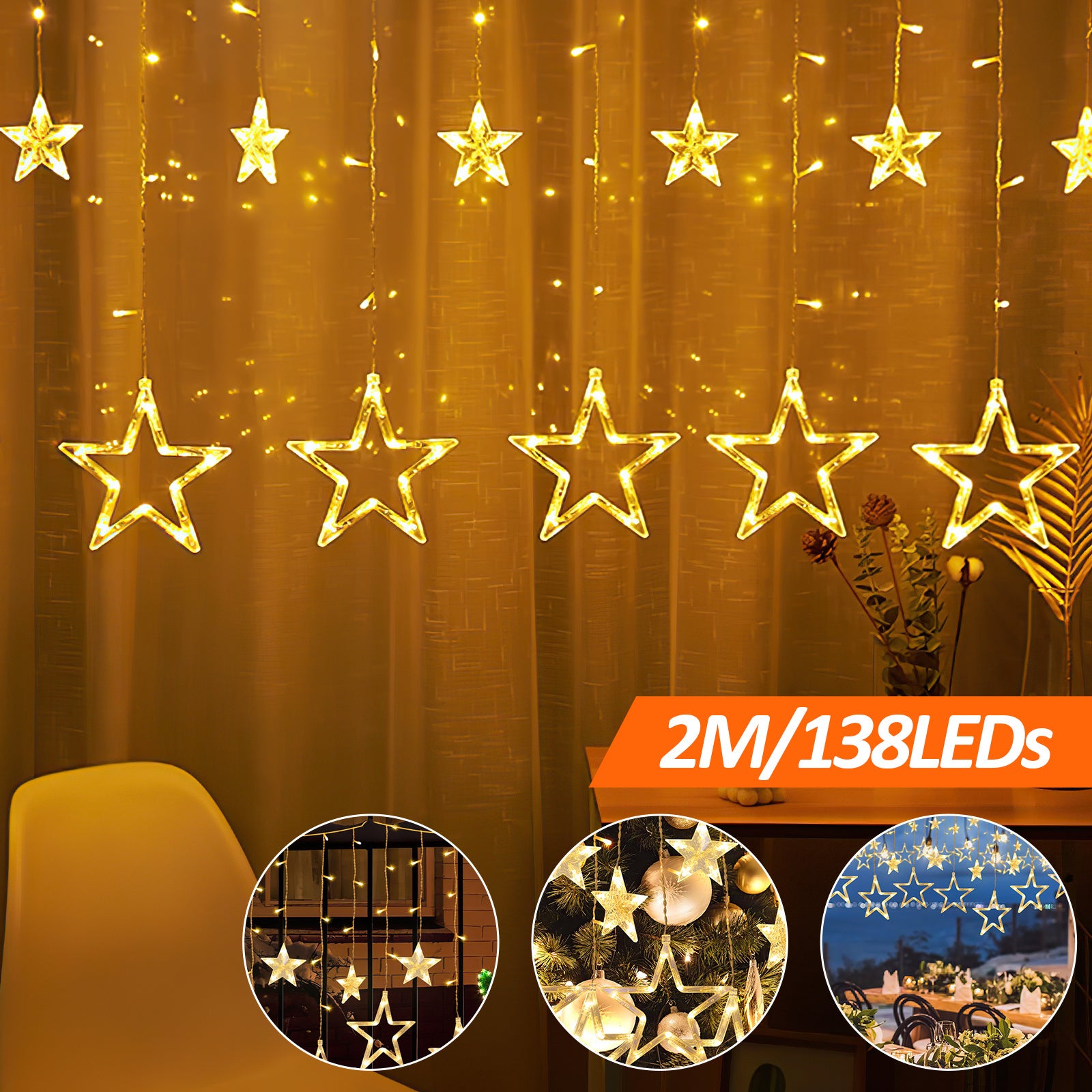 🌕 Lichterkette Stern: Lichtkette: 2 m, Sternlichterketter mit 138 LED, 12 Sterne Ornamente (6 große und 6 kleine Sterne). Netzkabel 3 Meter. Ein 360-Grad-Betrachtungswinkel lässt das Licht in alle Richtungen leuchten. Gefüllt mit dem sanftesten warmen Farblicht, um die Winternacht mit einem Hauch von Wärme zu füllen.