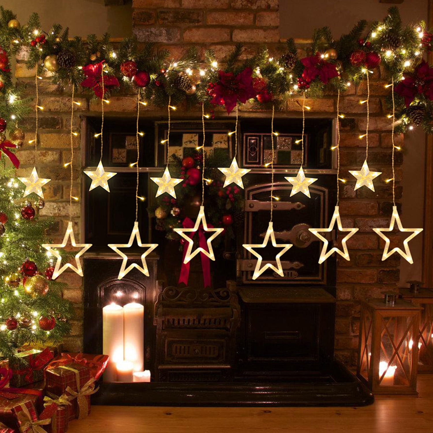 🌕 LED Lichterkette Sterne Weihnachtsdeko: Einfach zu installieren und zu entfernen. 2M Sterne Lichtervorhang fensterdeko, Kann auf Weihnachtsbäume, Wände, Fenster, Türen, usw. HängenSie können die Lichterkette einfach dort platzieren, wo Sie sie aufhängen möchten. Funktioniert mit DC31V Niederspannung, sind sie sicher sich zu berühren und werden Sie nie die Haut beschädigen.