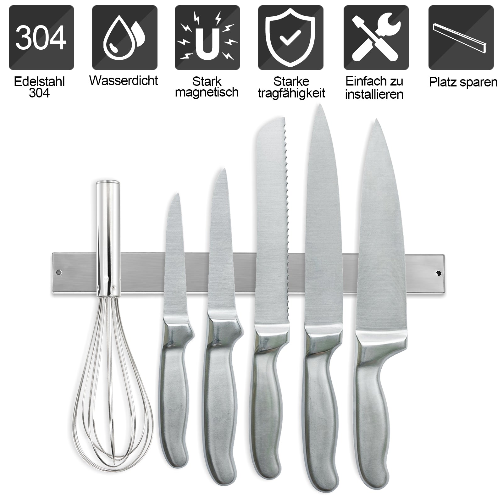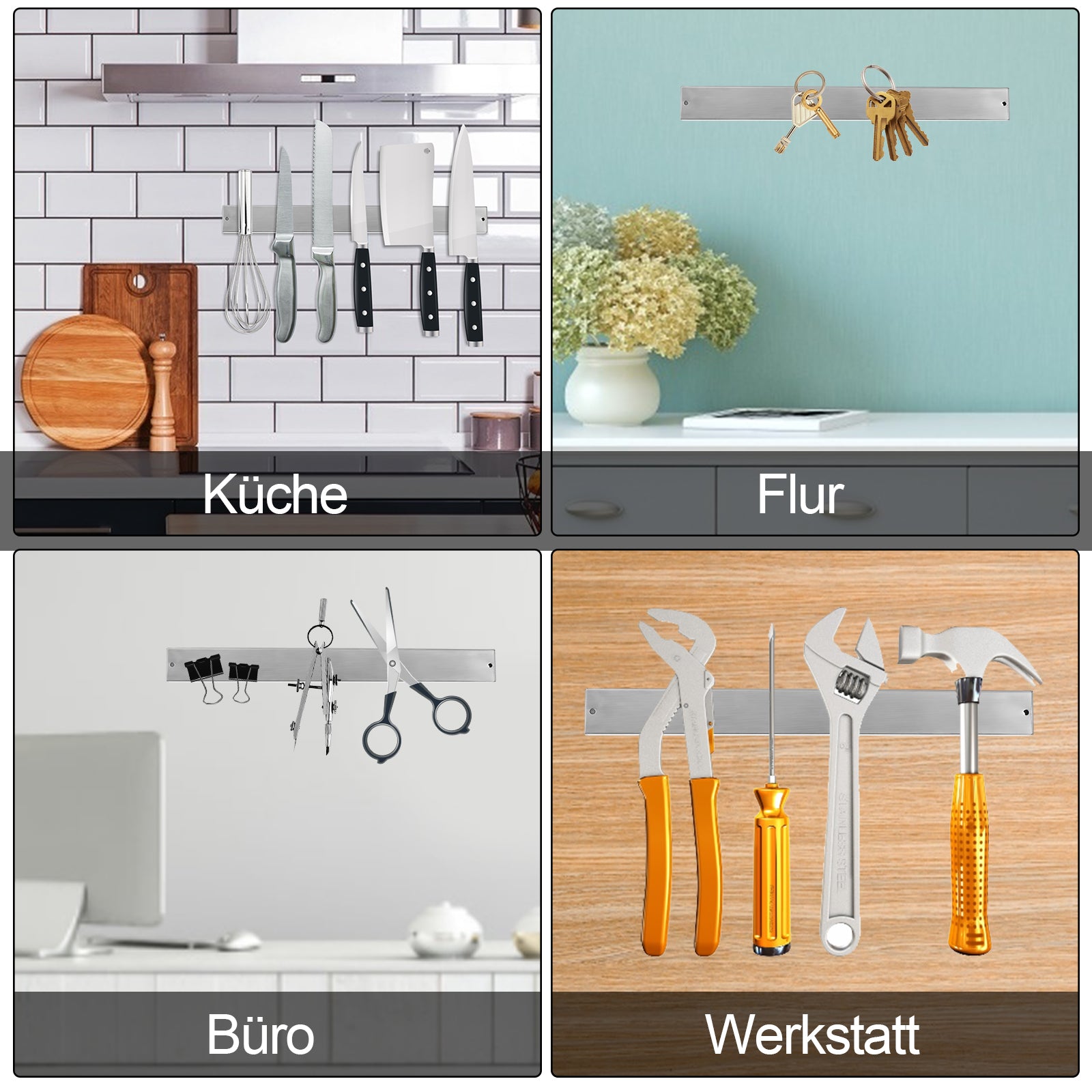 Ordnungshelfer: Diese elegante magnetische Messerleiste aus Edelstahl kann nicht nur in der Küche, sondern auch in Büros, Garagen, Waschküchen, Werkzeugräumen, Kellern zum Aufbewahren von Messern, Scheren, Werkzeugen, Kinderspielzeug, Schlüsseln etc. verwendet werden Gegenstände aus Metall, die man sich vorstellen kann. Denn die Messerleiste hält jeden Metallgegenstand fest. seinen Platz. Sparen Sie Platz und halten Sie Artikel griffbereit, anstatt überall suchen zu müssen