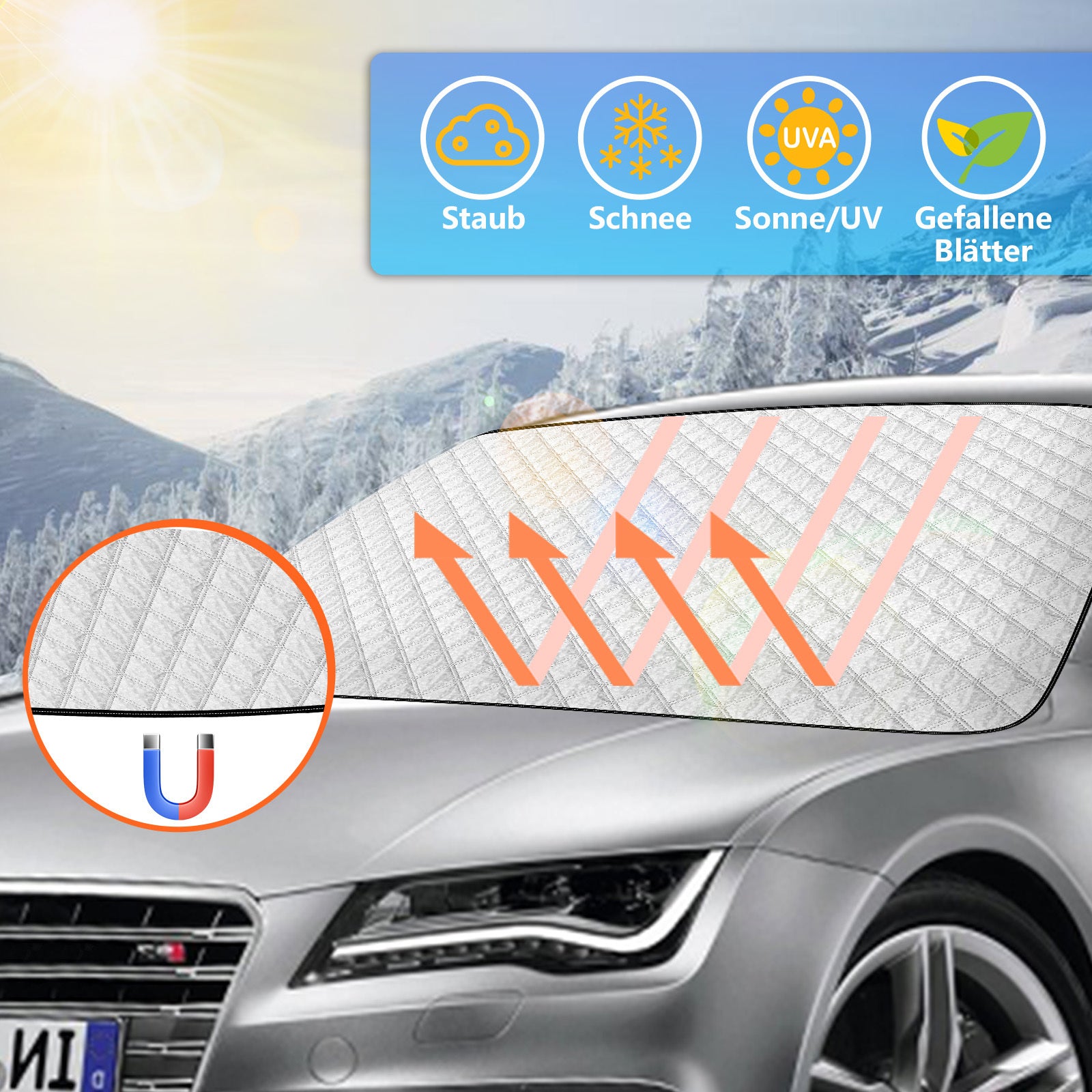 Unsere Autoscheibenabdeckungen schützen Ihr Auto zu jeder Jahreszeit.