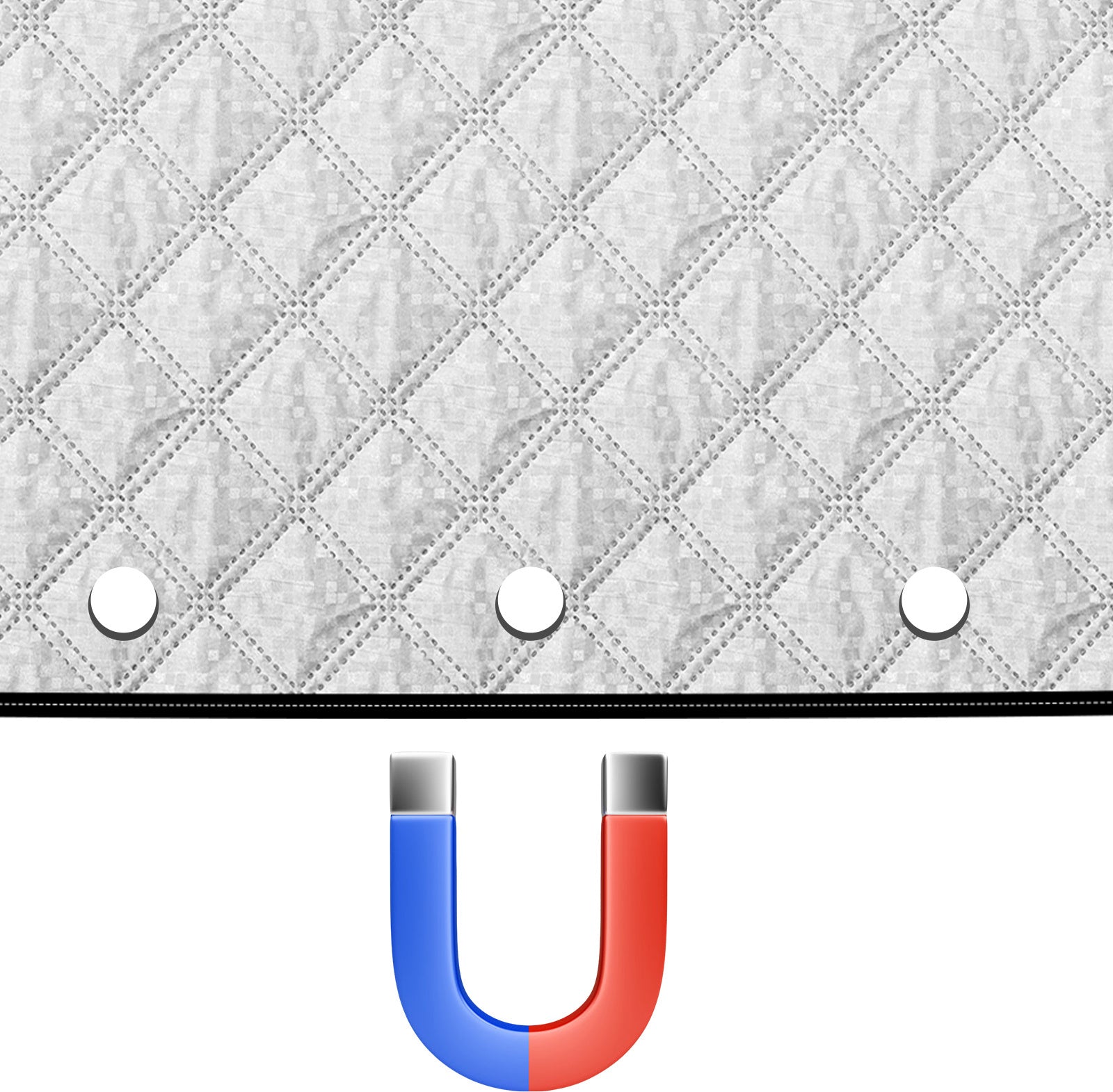9 Magnete innen: Im Inneren sind 9 Magnete versteckt, 4 in der oberen Reihe und 5 in der unteren Reihe, die dafür sorgen, dass die Windschutzscheibenabdeckung sicher an der Motorhaube befestigt ist. Magnete funktionieren nicht mit Aluminium- oder Kohlefaserhauben.