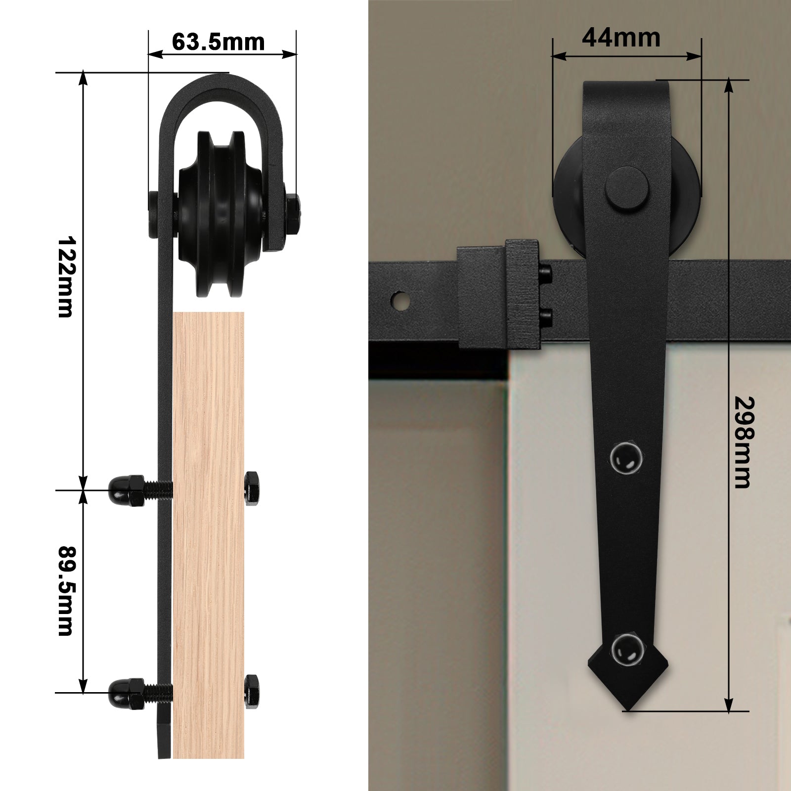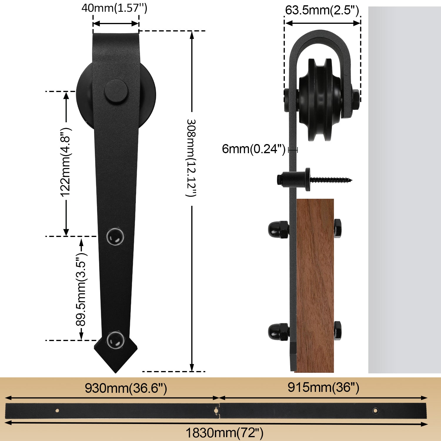 Der 183CM Schiebetürbeschlag ist für Türen mit Breiten von 900mm bis 915mm geeignet.