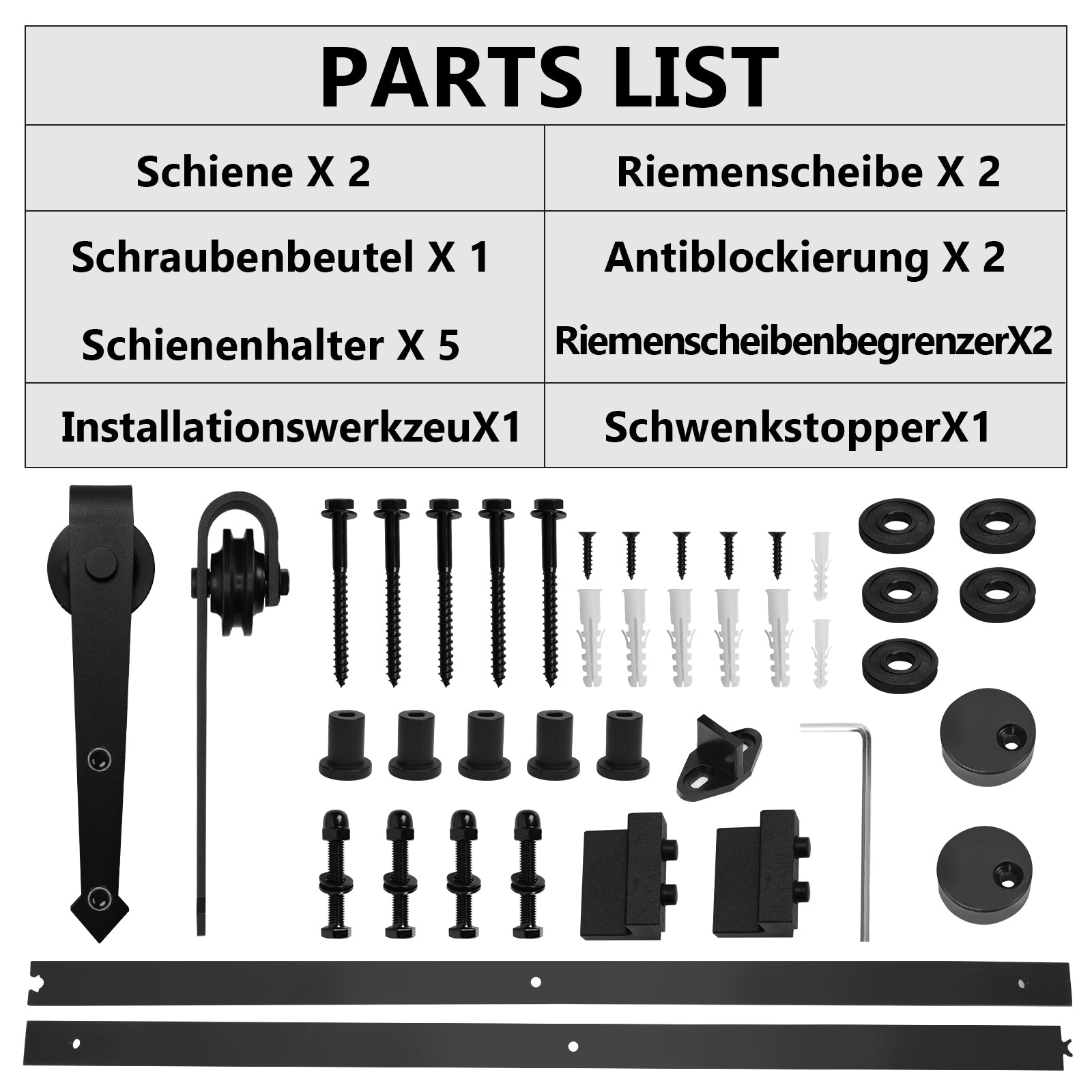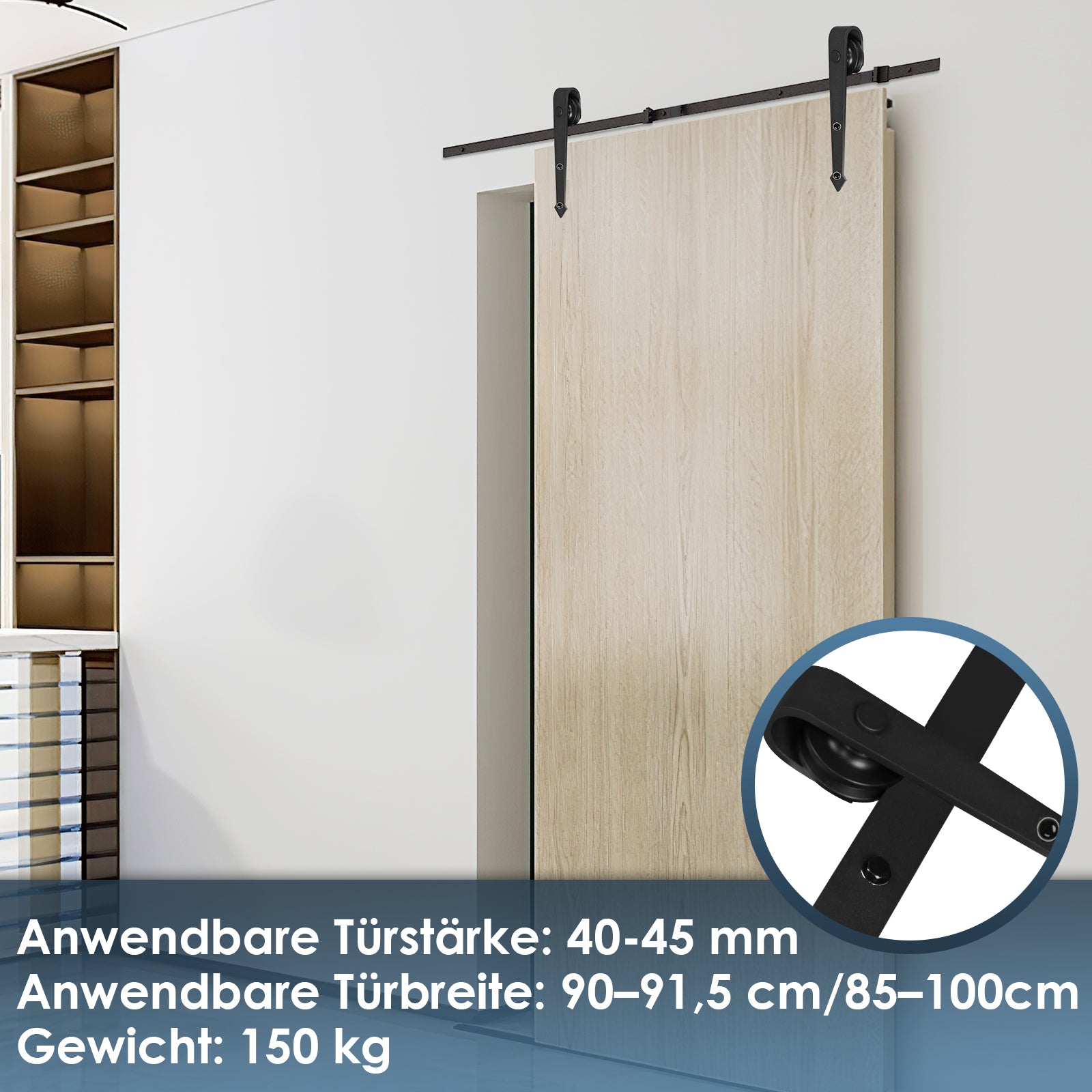 📏 Vielseitiges Schiebetür Komplettset mit Tür: Unser hochwertiges Schiebetür Komplettset mit Tür bietet die perfekte Lösung für Ihre Raumgestaltung. Mit einer Tragfähigkeit von 150 kg bis 200 kg ist es für Türstärken von 35-45 mm.