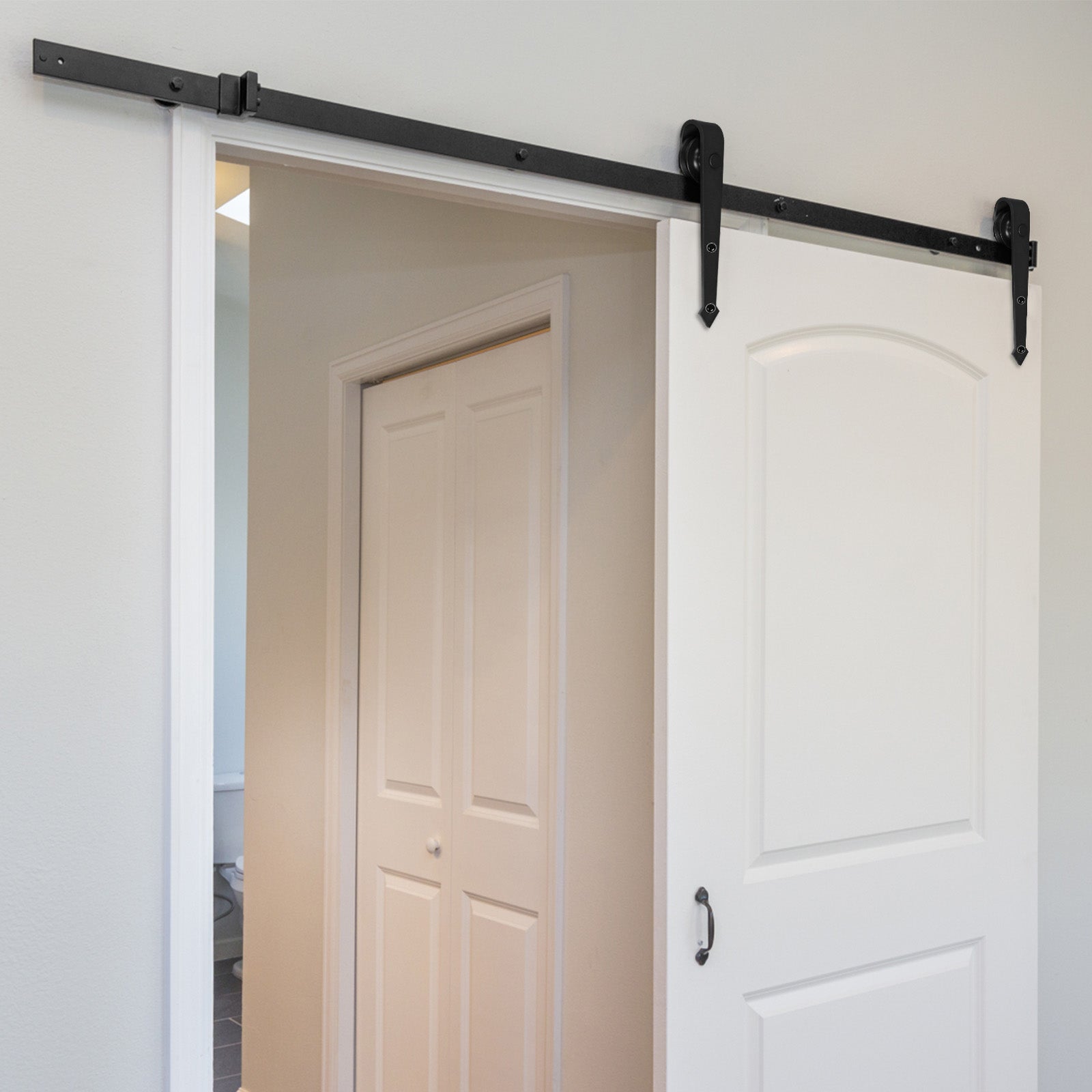 🛠️Robuster Kohlenstoffstahl in Eleganter Optik: Gefertigt aus langlebigem Kohlenstoffstahl, überzeugt unser Schiebetürsystem nicht nur durch seine Stabilität, sondern auch durch seine mattschwarze Oberfläche. Dieses moderne Design passt perfekt zu verschiedenen Einrichtungsstilen.