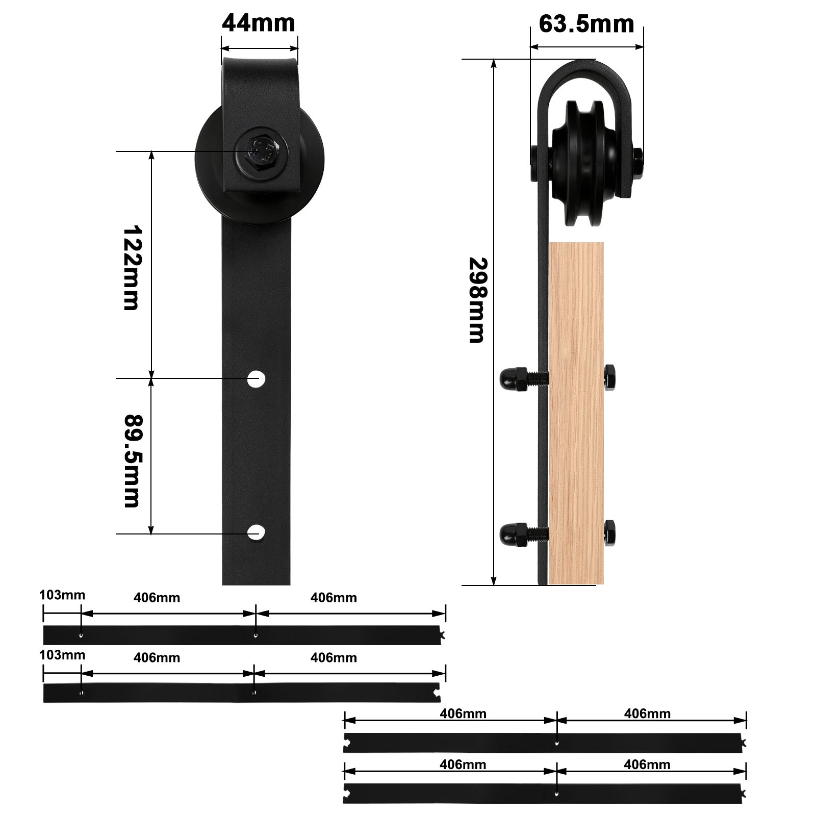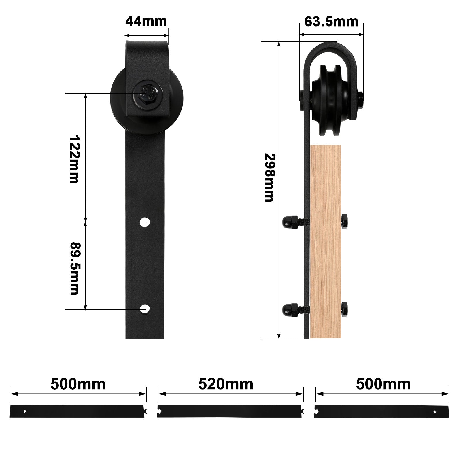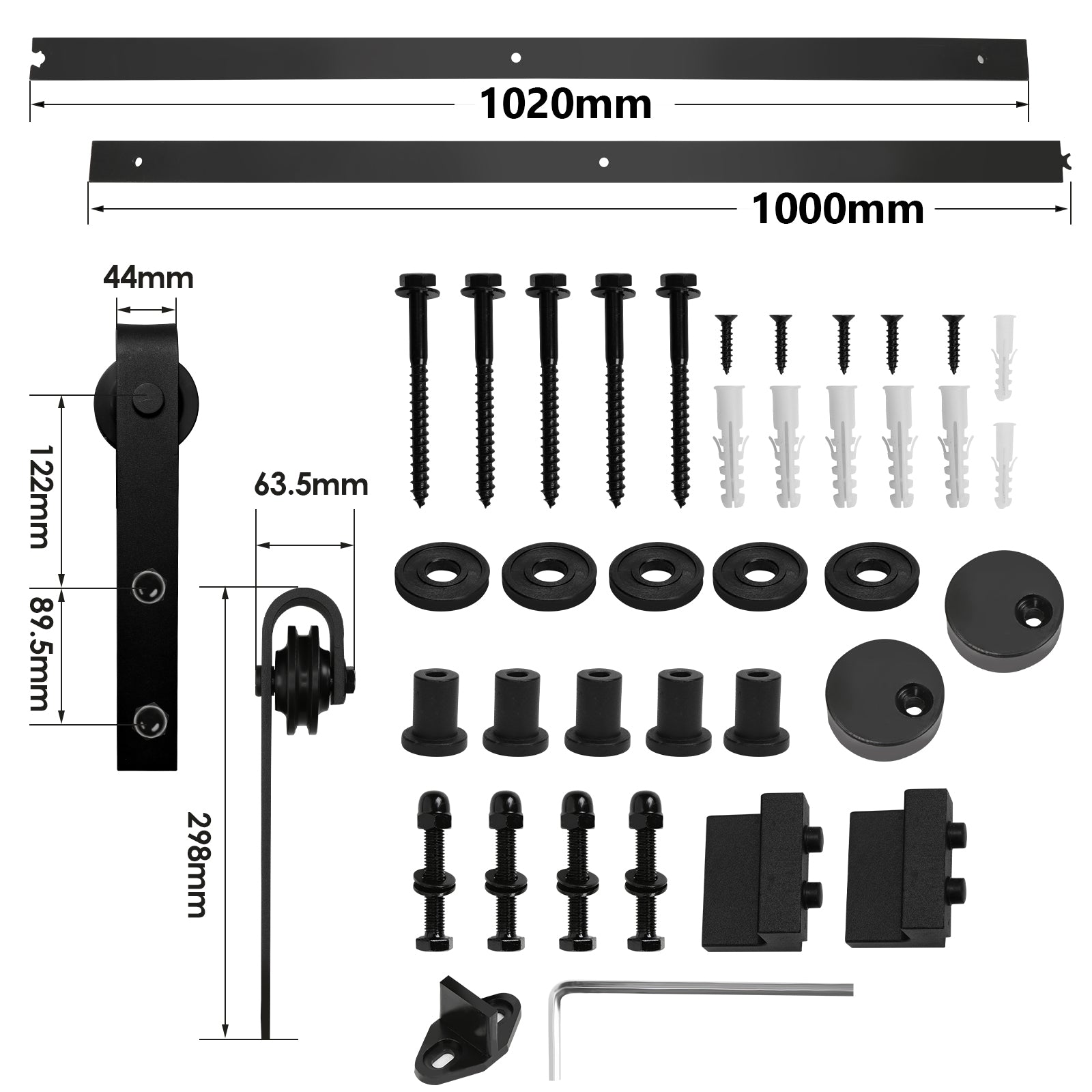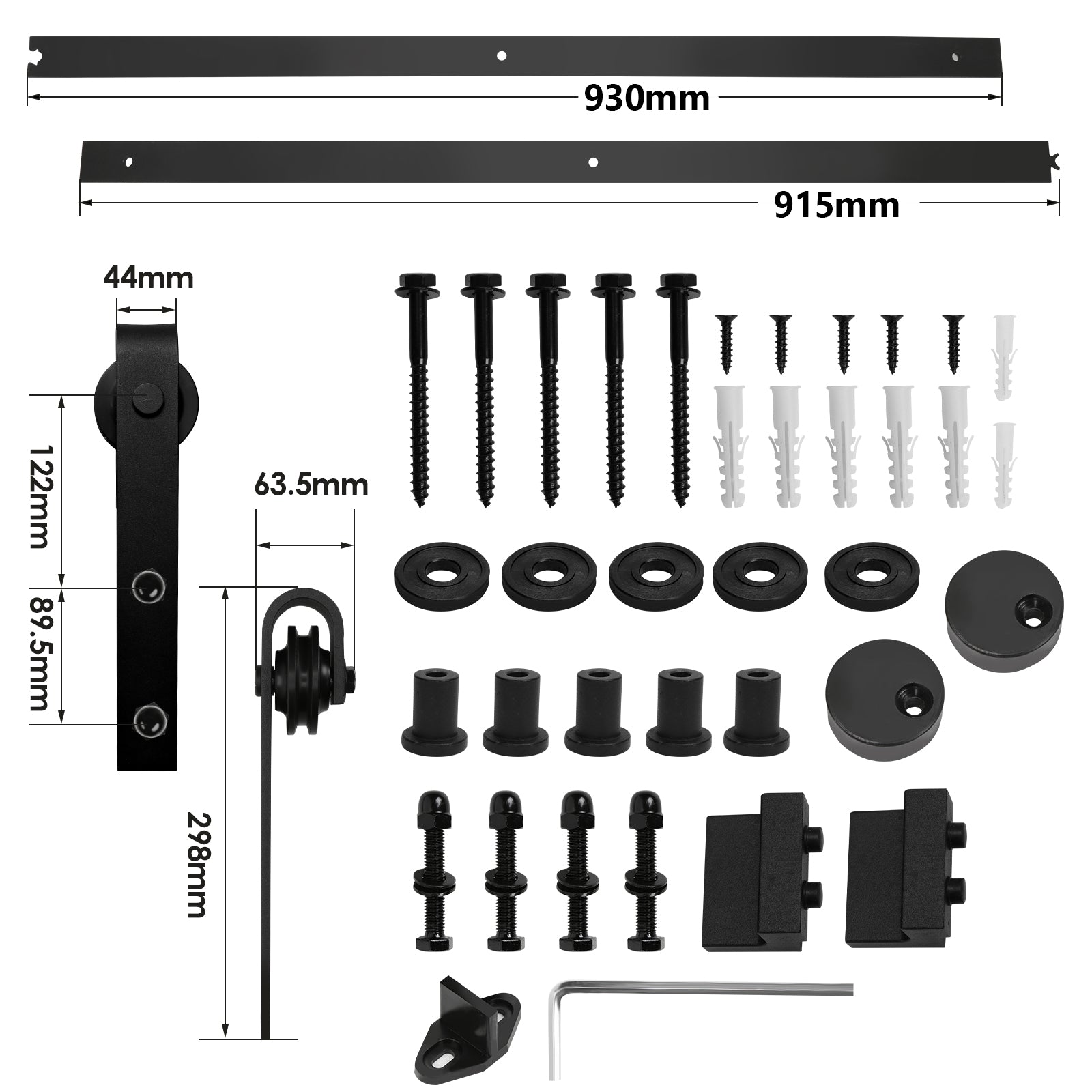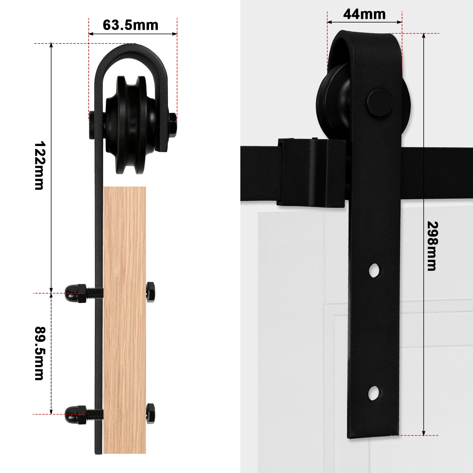 😊【Hochwertiges Material】Unser Schiebetürbeschlag - die Führungsschiene ist aus Kohlenstoffstahl-Material, das Flaschenzug-Material ist ein Verbundwerkstoff aus Kohlenstoffstahl und Nylon, mit einer Tragfähigkeit von bis zu 150kg, fest und langlebig, um die Stabilität und Glätte der Schiene zu gewährleisten.