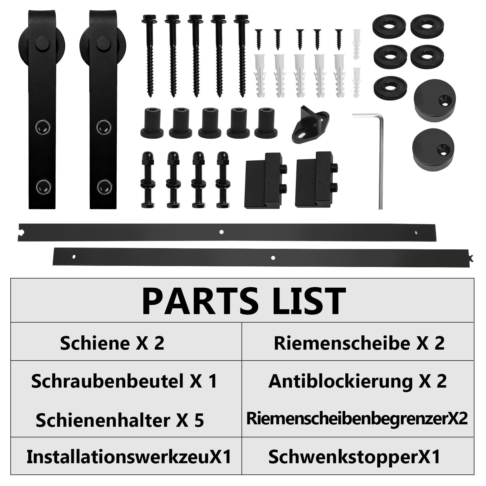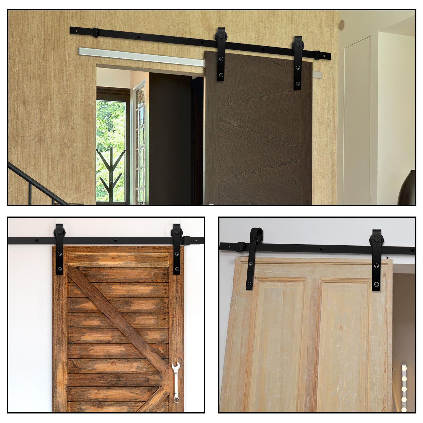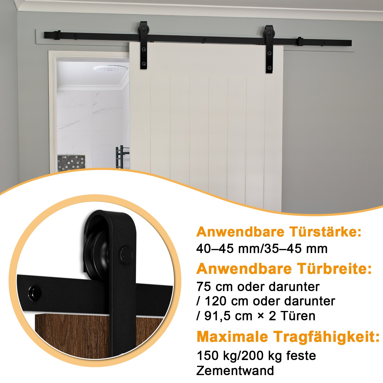 😊【Weiterer Anwendungsbereich】Schiebetür-Zubehör ist weit verbreitet für Einzel-und Doppeltüren aus Holz oder Metall, rustikalen Stil eignet sich für alle Arten von Innenräumen, wie Küchentüren, Schlafzimmertüren, Umkleidekabinen Türen, Lagerraum Türen und so weiter. Das wasserdichte und rostfreie Schienen-Set ist auch ein ideales Türzubehör für Garagen, Scheunen, Ställe und vieles mehr.