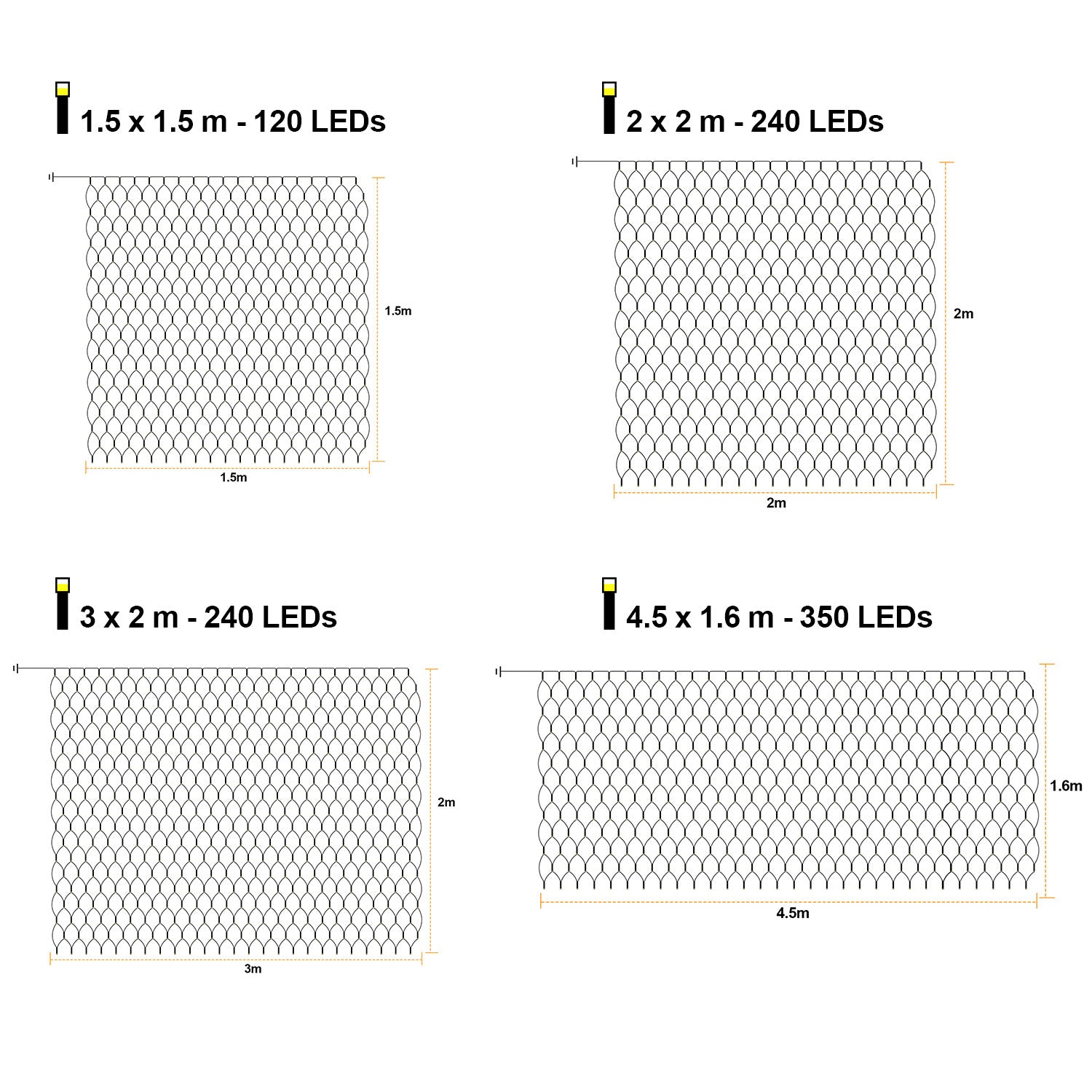 [✨ Mehrfache Auswahl an Lichtnetzen]: Die Lichtnetze sind in zwei Farbtemperaturen, warm und farbig, und vier Größen von 1,5 x 1,5 m, 2 x 2 m, 3 x 2 m und 4,5 x 1,6 m zur Auswahl erhältlich. Wählen Sie je nach Ihrer eigenen Situation ein Lichtnetz, das zu Ihnen passt.