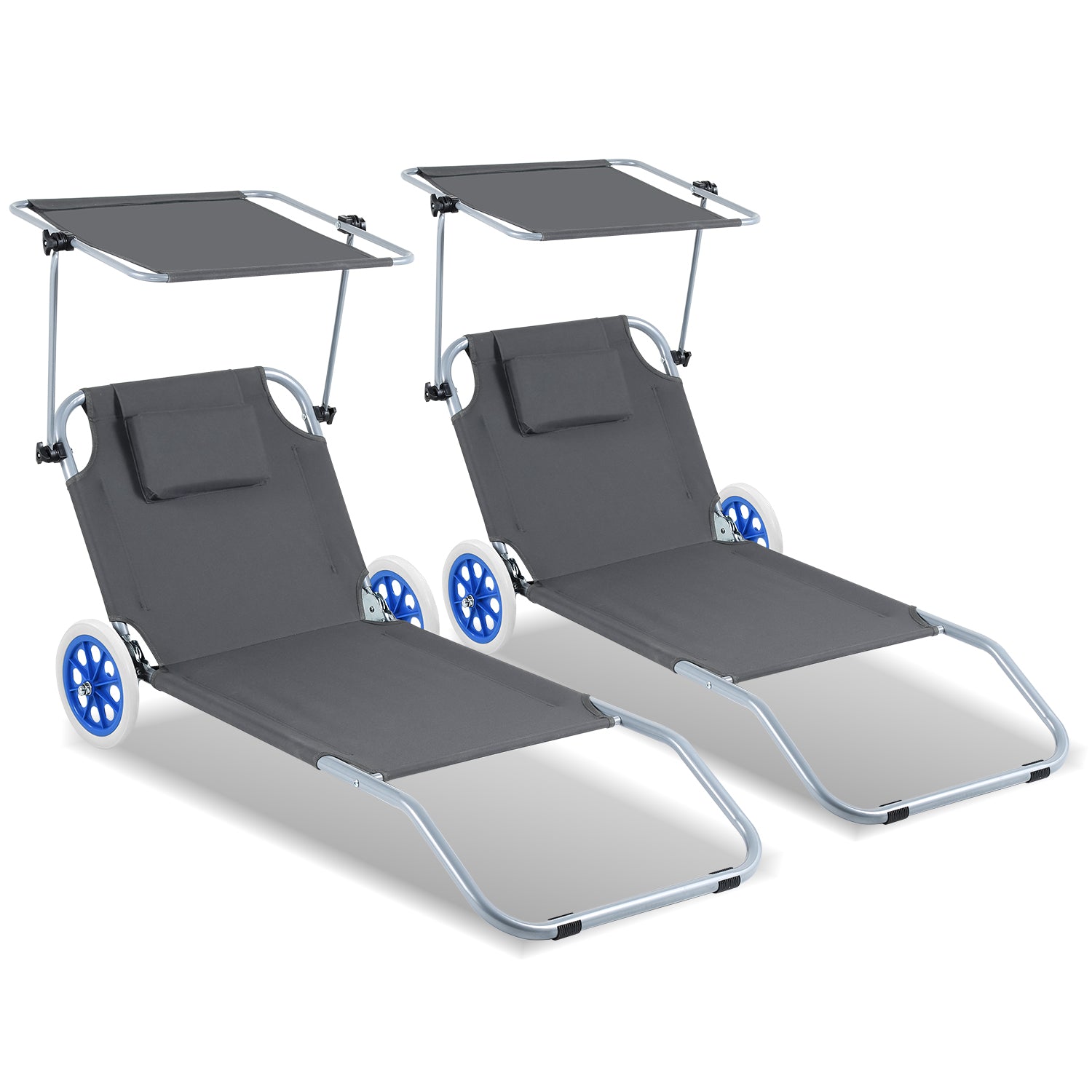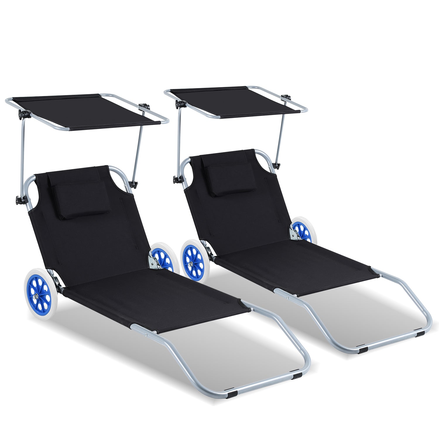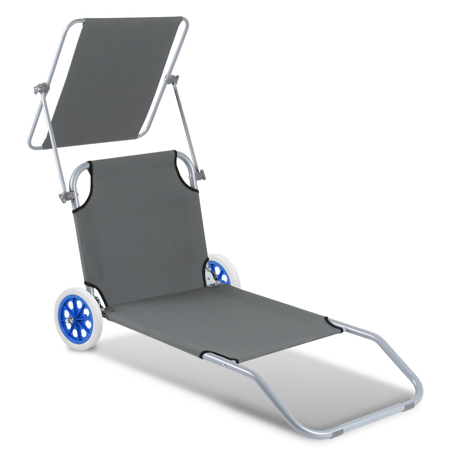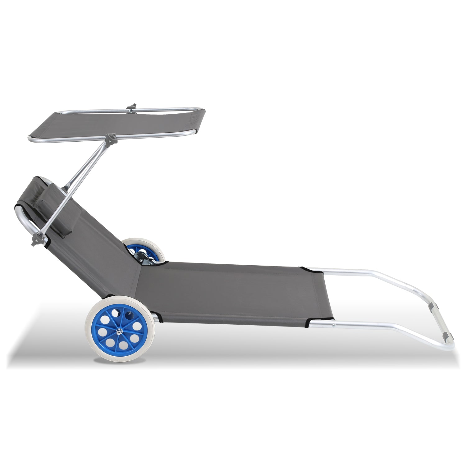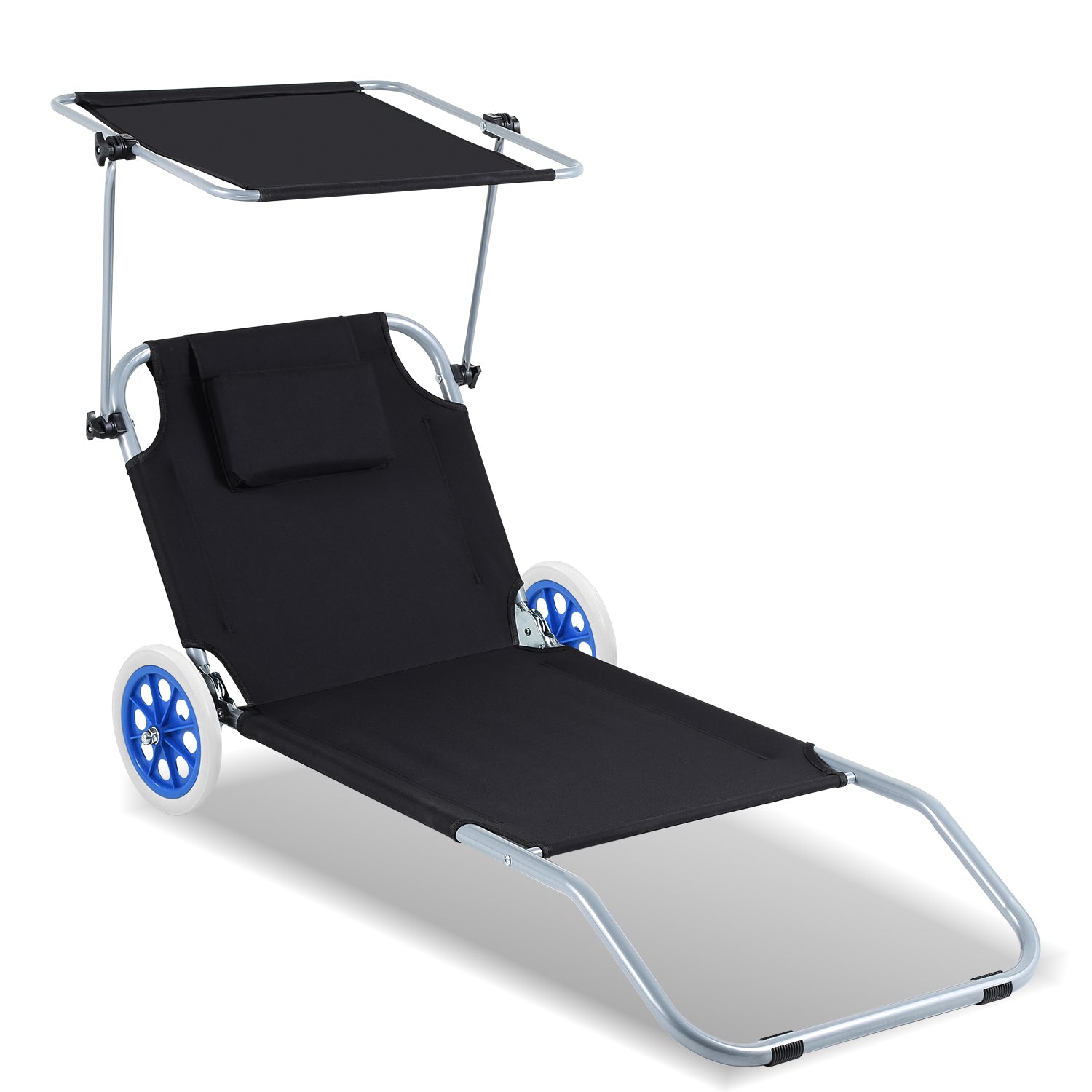 1 Sonnenliegestuhl mit Sonnendach und 2 Rädern
