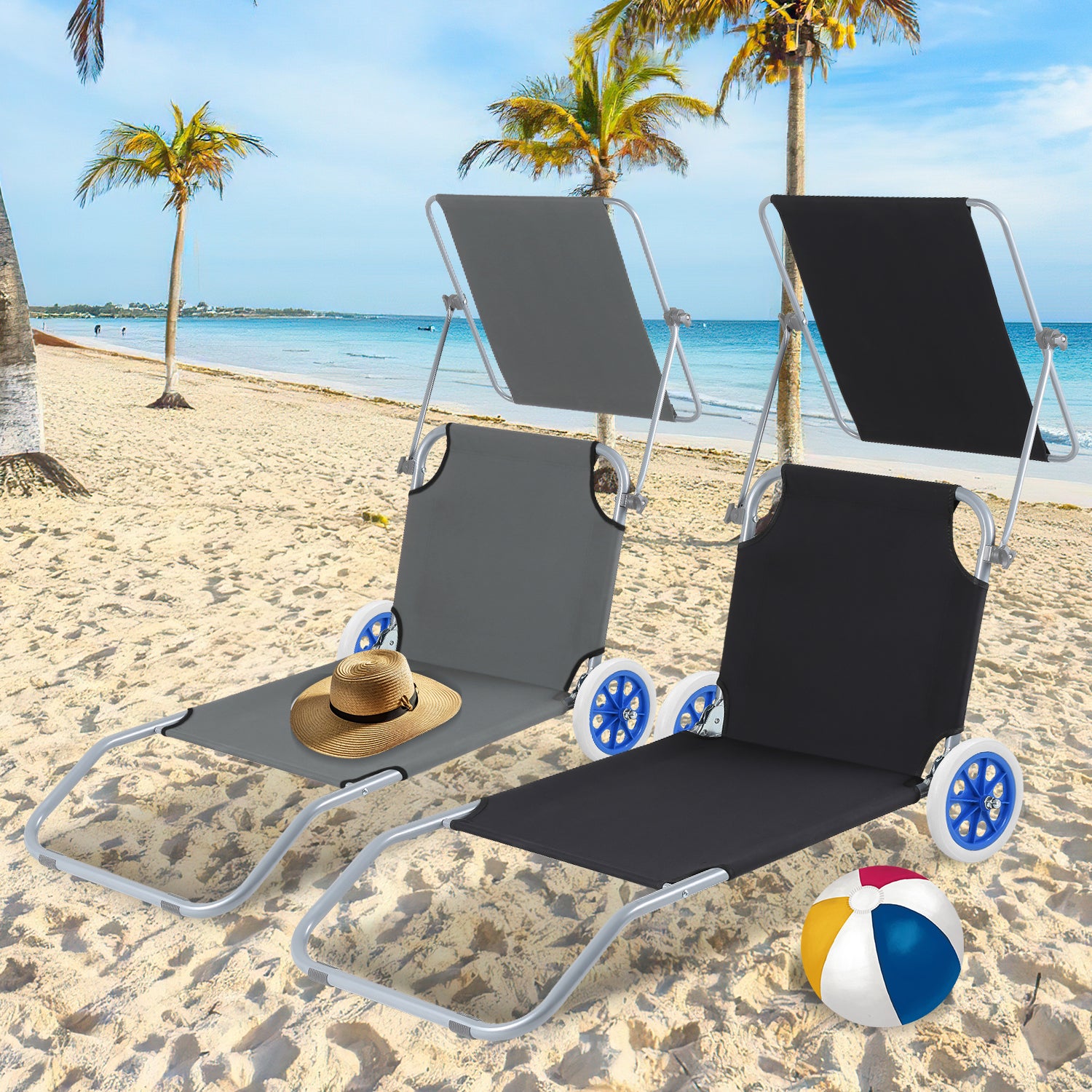 🌞Strandliege mit Rädern: Die Sonnenuntergänge hat 2 stabile und reibungslos laufende Räder für einen einfachen Transport.