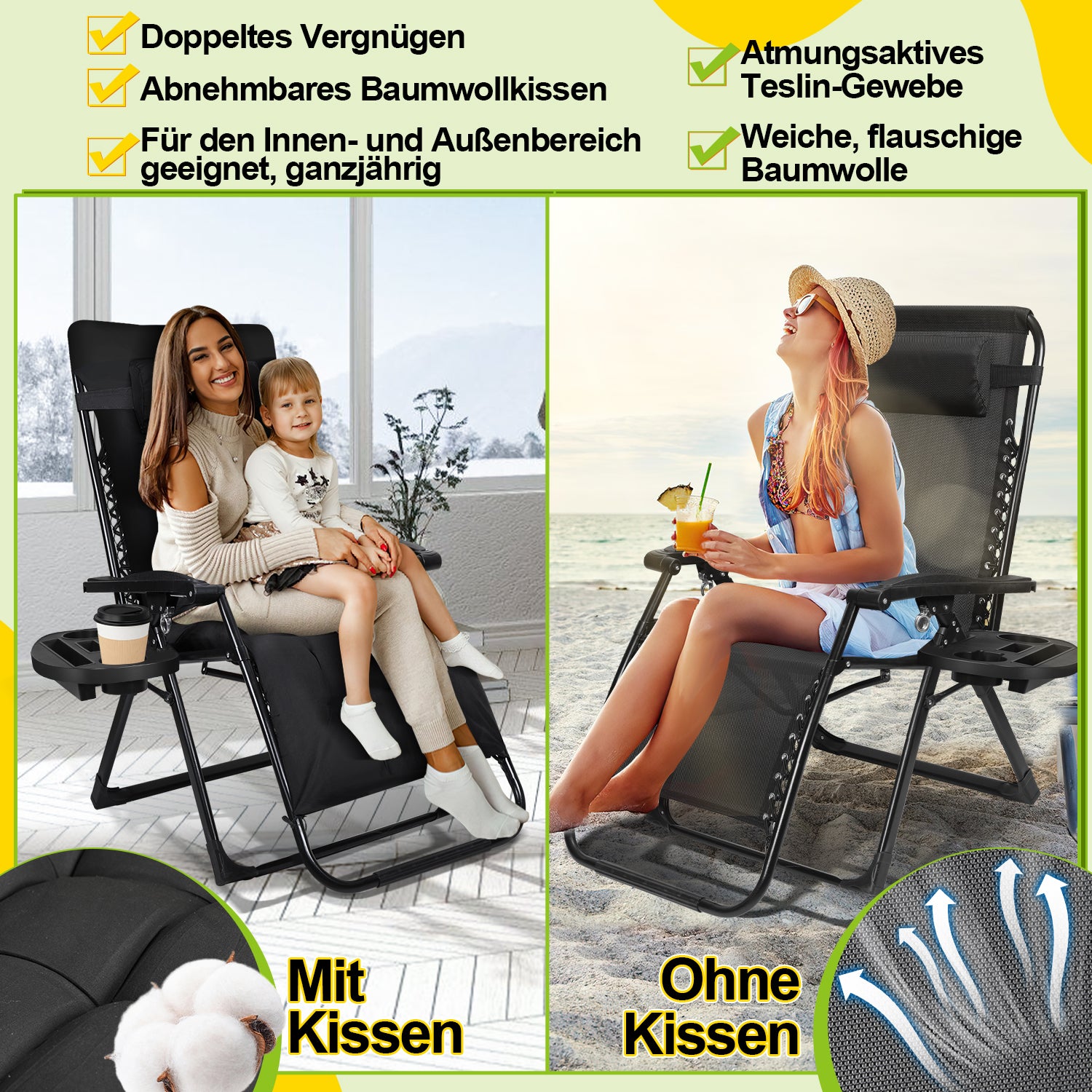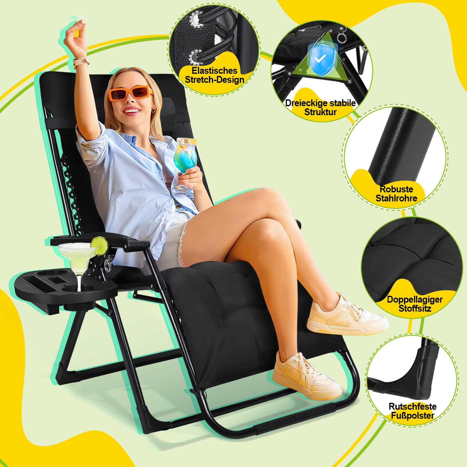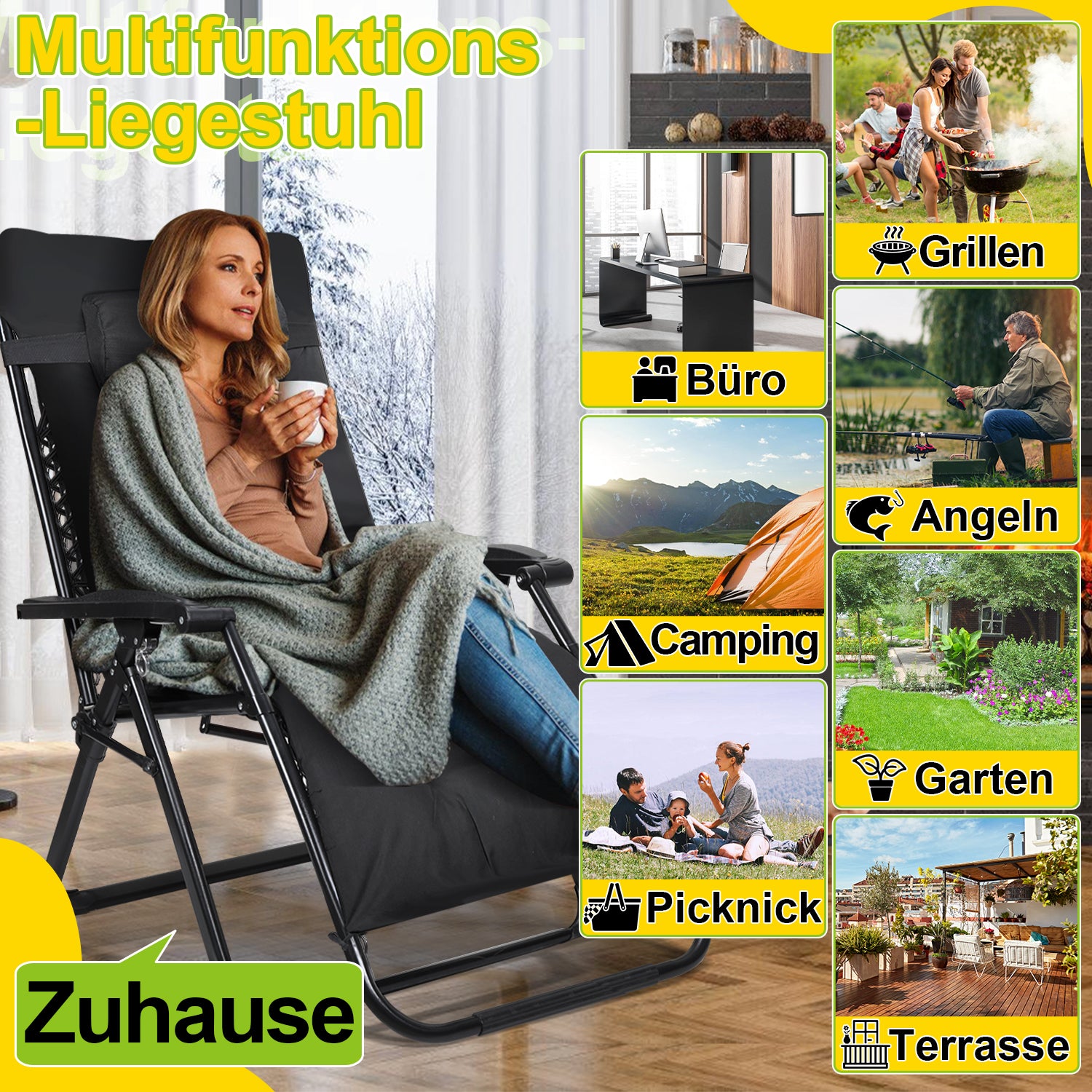 Ergonomisches Design: Die verstellbare Liege ist ergonomisch gestaltet und lässt sich von 96° bis 120° in der Rückenlehne verstellen. Ihre Zero-Gravity-Struktur passt sich verschiedenen Sitz- oder Liegepositionen an, sodass Sie sich jederzeit entspannen können, ohne dass Sie sich nach längerer Nutzung unwohl fühlen.