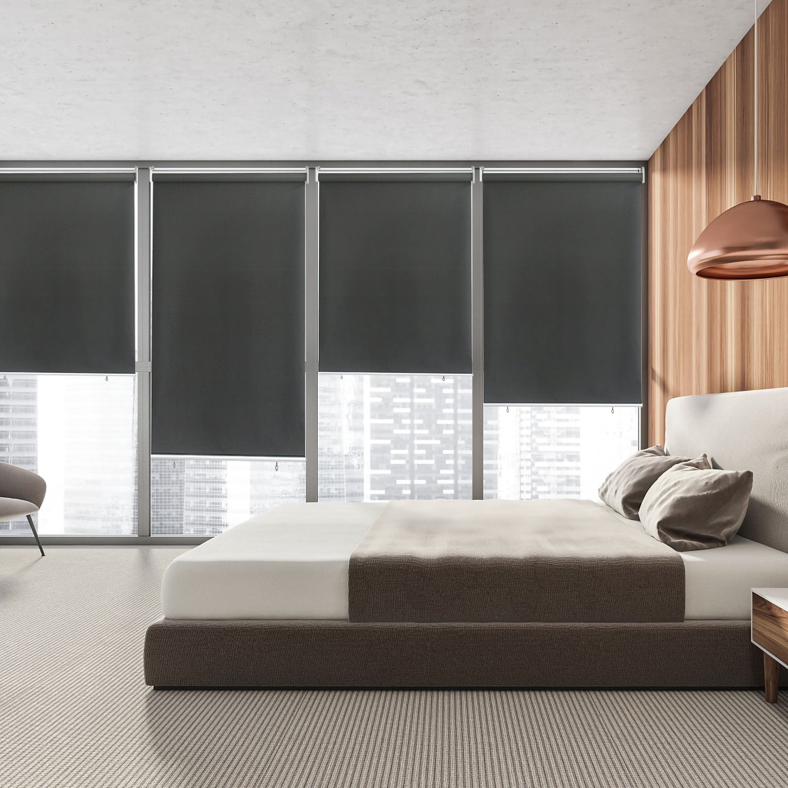 Die seitlichen Führungsschienen sorgen für 100% Verdunkelung in Ihren Räumen. Es spielt keine Rolle, welche Größe Sie wählen. Der Effekt ist für alle verfügbaren Rollos gleich.