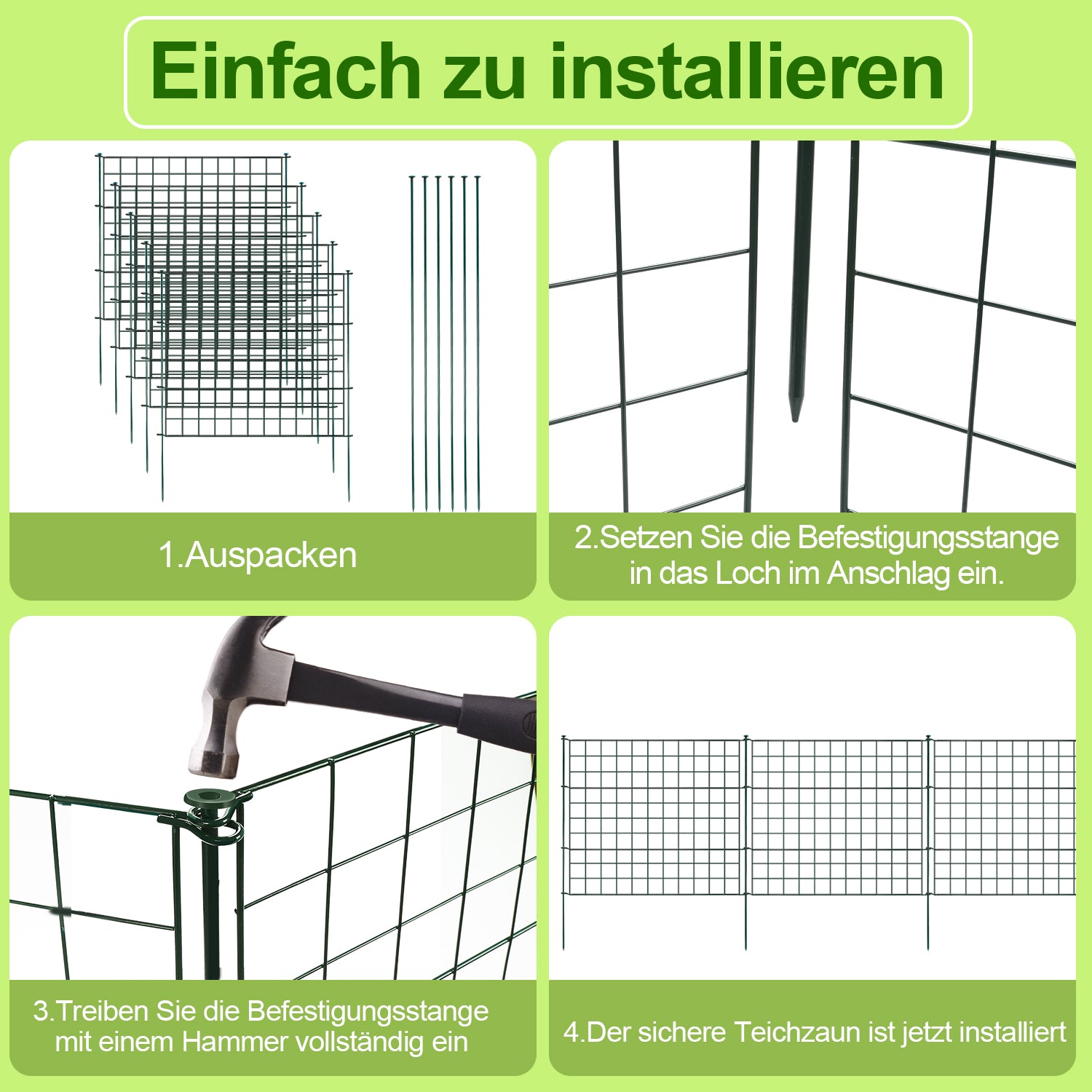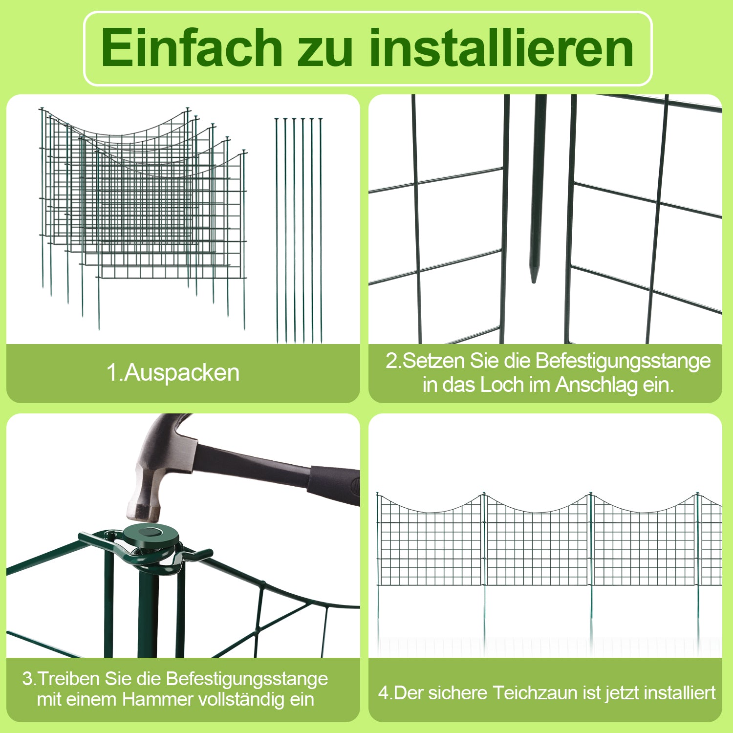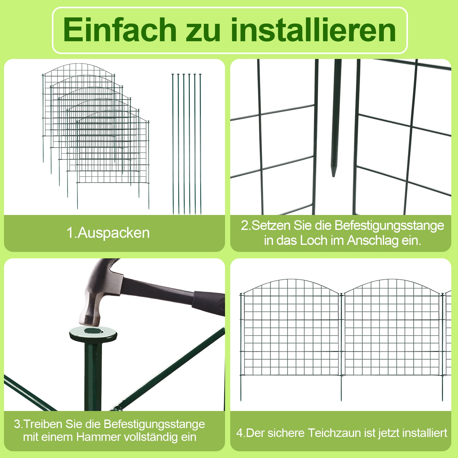 🌴【Material】teichzaun steckzaun besteht aus robustem und langlebigem Stahl mit Pulverbeschichtung, um Rost zu verhindern.
