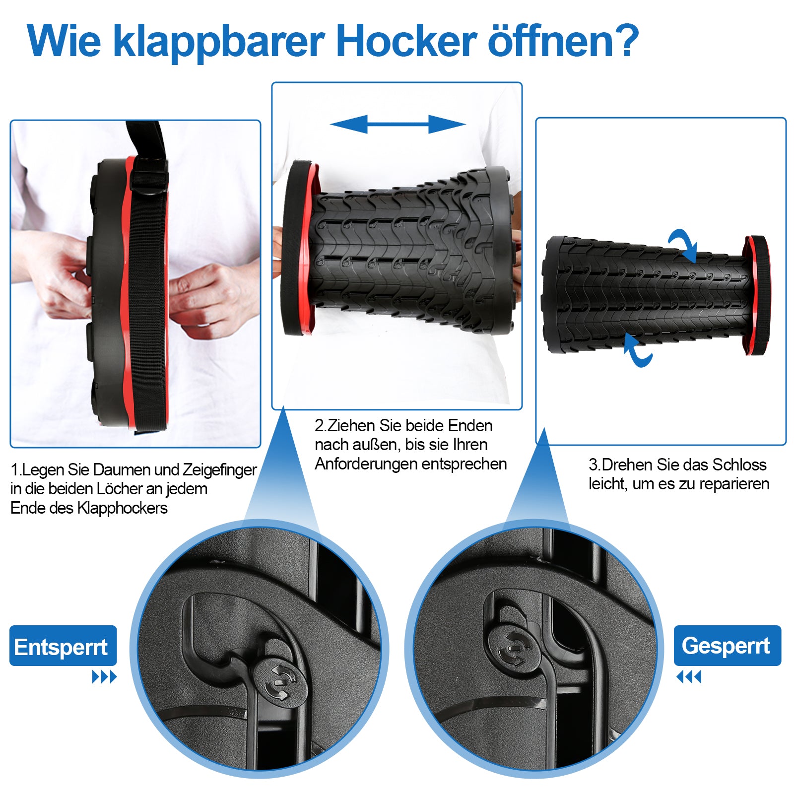 🏞️【Einzigartiges Faltendes Design】Der tragbare Teleskophocker hat zwei Schnallen oben und unten. Sie können auch die beiden Schnallen halten, um sie zu strecken und sie im Uhrzeigersinn/gegen den Uhrzeigersinn zu drehen, um es einfach zu öffnen und zu schließen.