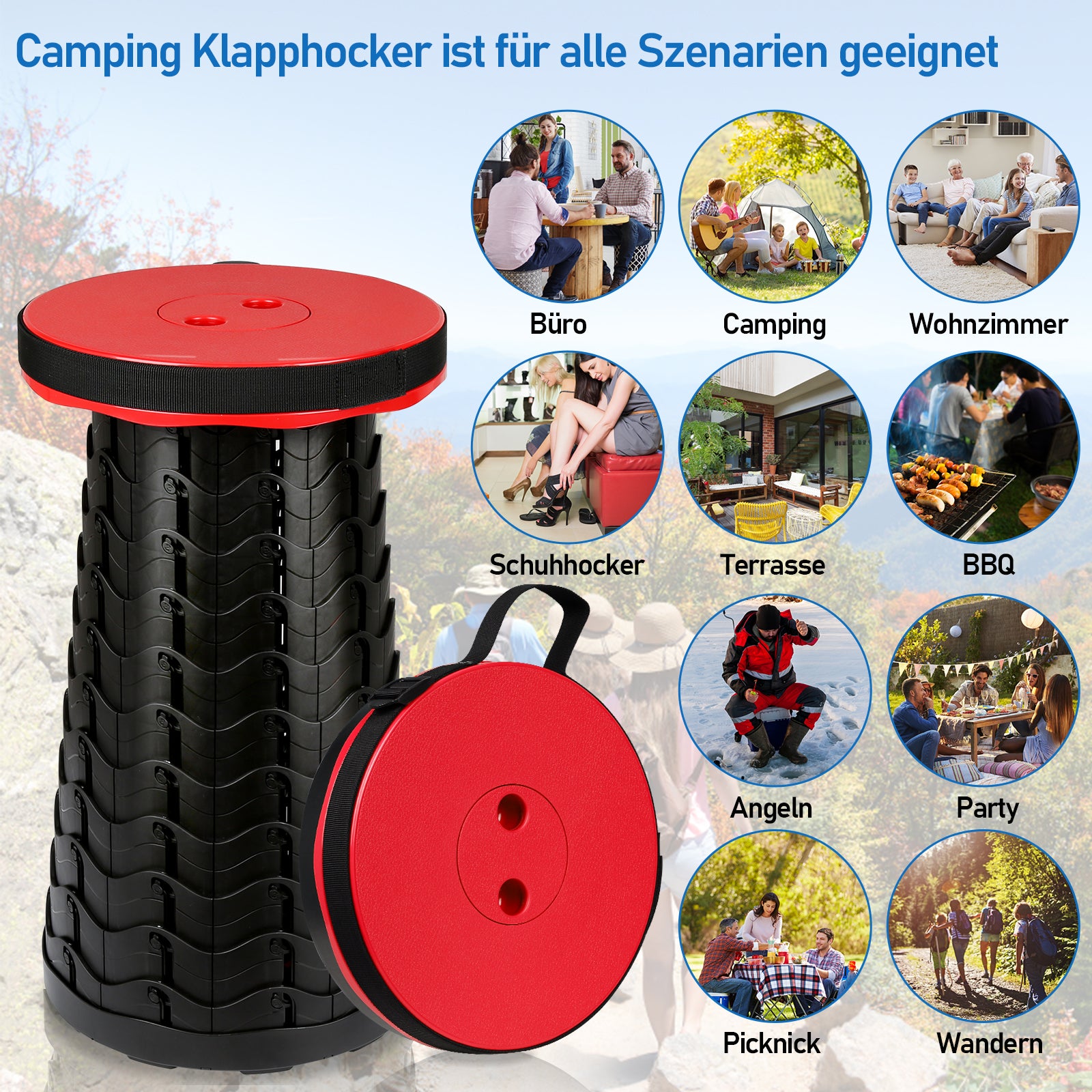 🏞️【Höhenverstellbar】Der einziehbare Klapphocker lässt sich leicht öffnen und verriegelt in der gewünschten Höhe in nur 2 Sekunden mit einer einfachen Drehung. Der Teleskophocker kann jede Höhe zwischen 6 und 45 cm sein, um die Bedürfnisse verschiedener Nutzungsszenarien zu erfüllen.