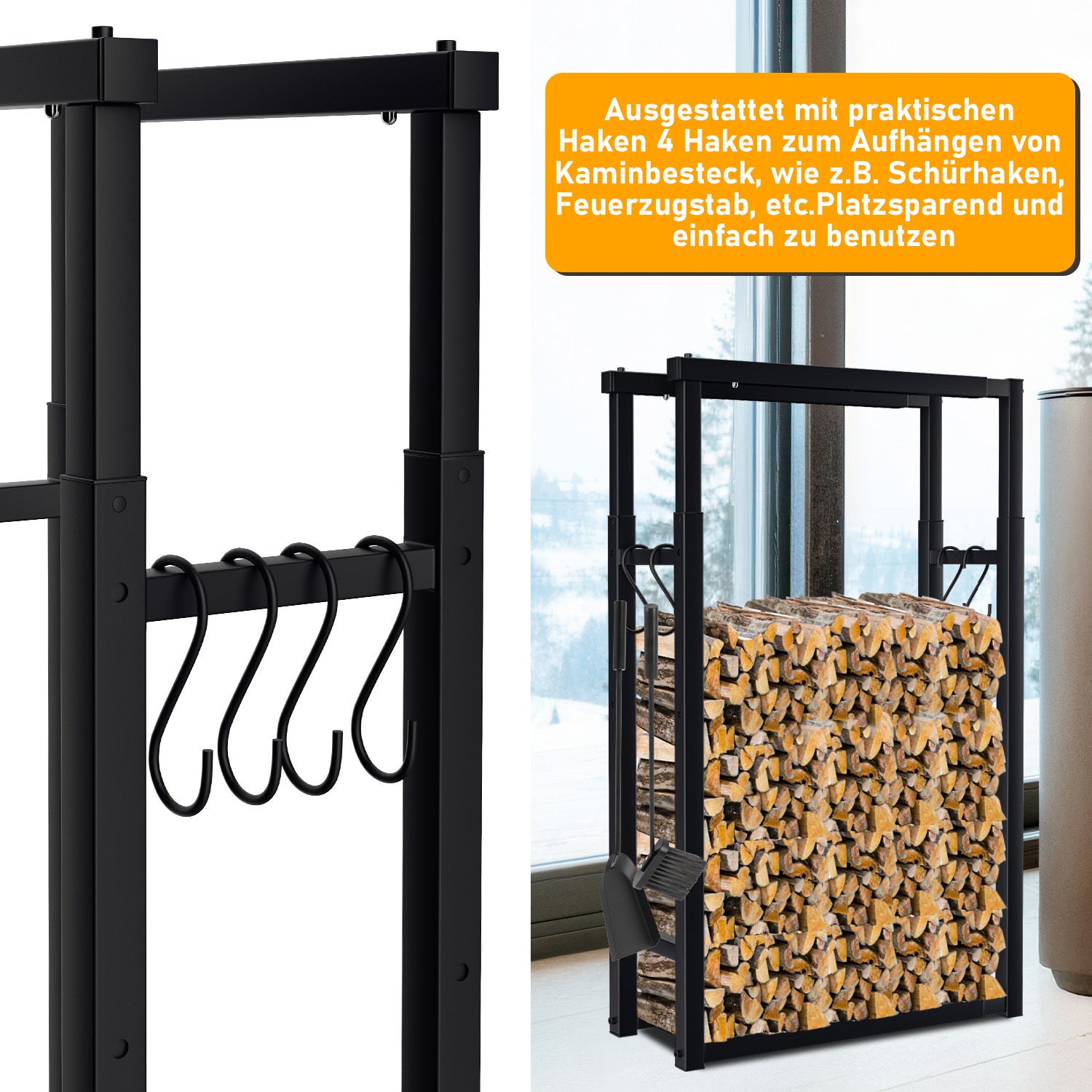 ✅ Praktische Haken-Ausstattung: 4 spezielle Haken an der Seite zum ordentlichen Aufhängen von Kaminwerkzeugen wie Feuerzange und Schürhaken. Maximale Raumnutzung und immer alles griffbereit.