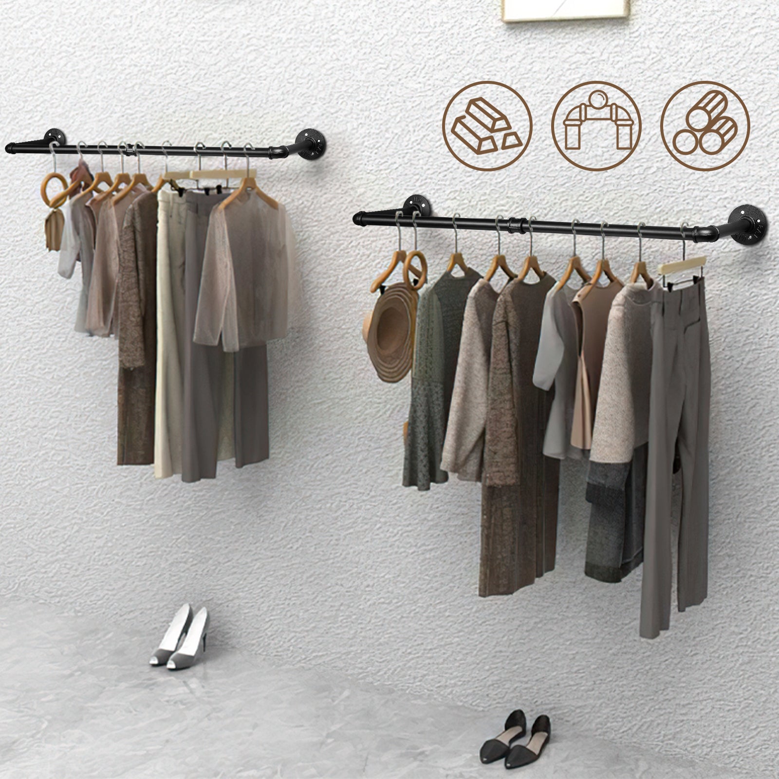 [Robust und stabil] Dieser Kleiderständer aus Stahl kann bis zu 65 kg an einer festen Wand tragen.Es hat eine hohe Härte, ist nicht leicht zu rosten und hat eine starke Tragfähigkeit.