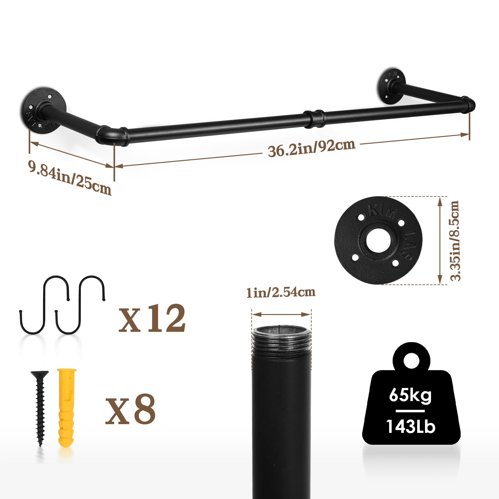 [Platzsparend] Dieses Kleiderstangen ist 92 cm lang der Abstand zwischen Wand und Kleiderstange beträgt 25 cm, der Wand optimal aus und erweitert den Raum für das Ordnen und Aufhängen von Kleidung, wenn der Platz in der Garderobe knapp ist, ohne Bodenfläche zu beanspruchen.