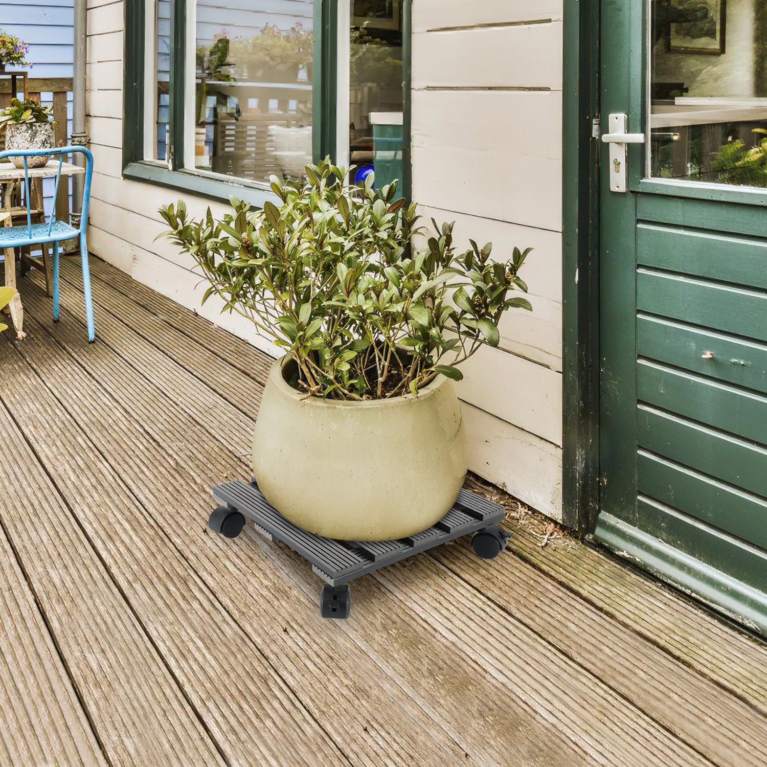Der Pflanzenroller eignet sich für den Einsatz auf unempfindlichen Böden wie Terrassen, Balkonböden, Fliesen und PVC und kann mit einer Tragkraft von bis zu 80 kg sowohl als Pflanzenroller für den Außenbereich als auch als Blumenroller für den Innenbereich eingesetzt werden.