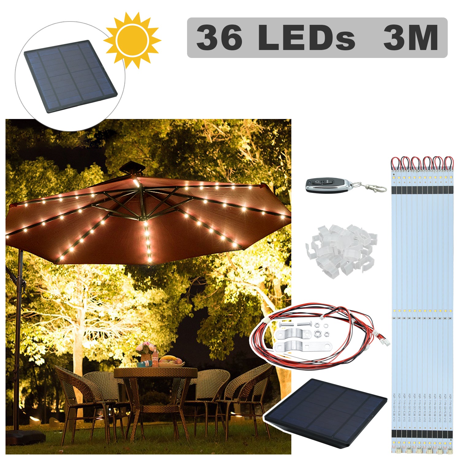 ☂【LED Beleuchtung】Die 48 LED Lampen sorgen mit ihrem stimmungsvollen Licht für ein angenehmes Ambiente. Strom liefert ein leistungsstarkes Solarpanel, das direkt oben am Schirm angebracht ist. Kann durch Schalter gesteuert werden