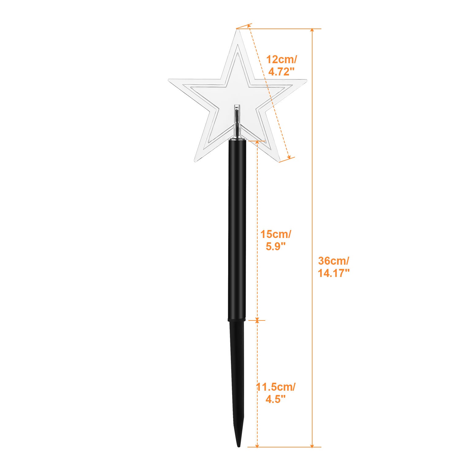 ✨【Einfach zu installieren】Der Weihnachtslichter Außen hat einen Bodenstecker für eine einfache Installation. erdspieß: (H) 11,5cm / Stab (zwischen Erdspieß und Stern): (H) 15cm / Stern: (H) 12cm ; Höhe insgesamt 36cm; ohne Erdspieß: 24, 5 cm.